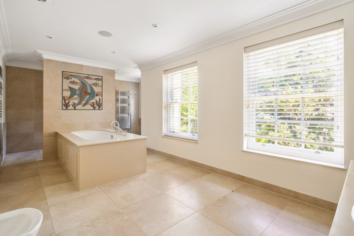 Set behind secure gates and surrounded by mature trees and landscaped gardens, Little Copse offers privacy and seclusion on a grand scale. Inside, the interiors are bathed in natural light and finished to a high standard, with expansive living spaces, bespoke joinery, and high-end finishes throughout. From the grand reception hall to the open plan kitchen living area and well-appointed bathrooms, every detail has been carefully considered.