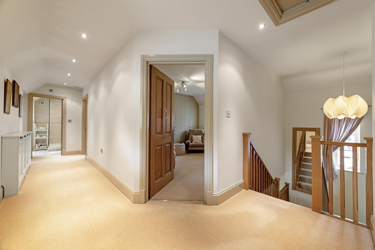 An outstanding home presented to the highest of standards, situated in a sought after village location comprising vast reception entrance, cloakroom/WC, superb breakfast kitchen, large dining hall with seating area, sitting room, study, spacious feature bedroom with superb en-suite bathroom, three further bedrooms, guest en-suite, family bathroom, stunning gardens, an approximate 1.39 acre paddock, double garage and parking for two cars.