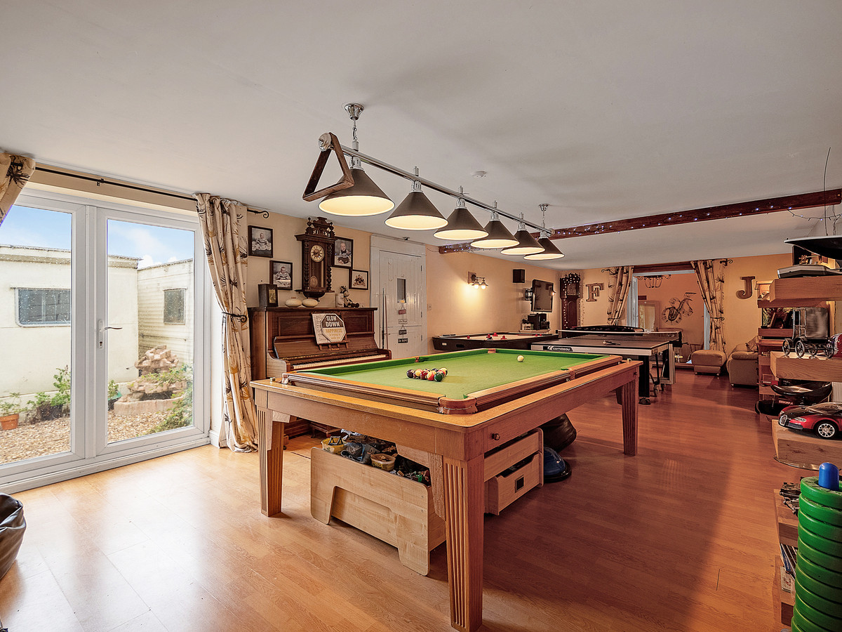 - Large entertainment room, gymnasium, tack room, office, large storage barn