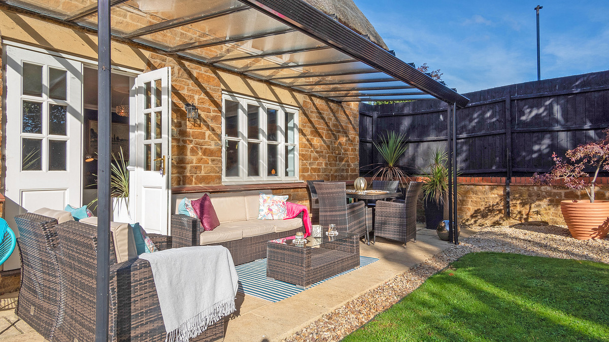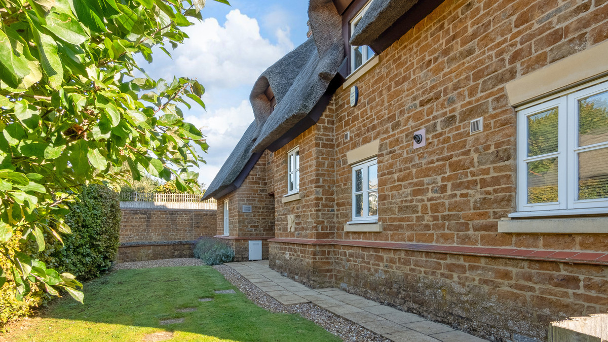 A beautifully presented detached thatched residence built from Hornton stone, to an award winning design, and in a sought after location, comprising entrance hall, cloakroom/WC, kitchen, utility room, dining room, superb sitting room, snug, four bedrooms, two with en-suites, family bathroom, first floor office, double garage, parking for four cars and a beautiful garden.