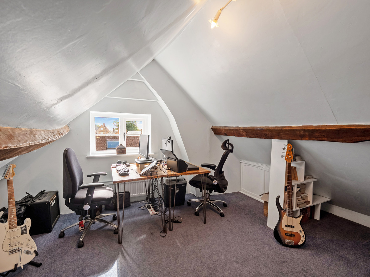 A delightful, Grade II listed family home in the picturesque village of Gawcott. Offering four large bedrooms, two with mezzanine areas above, an attic conversion currently used as an office, principal bedroom with dressing room and full ensuite bathroom. Original flagstone flooring downstairs and a family kitchen that allows seating for up to eight people, lovely and private village garden with off street parking for up to four cars.