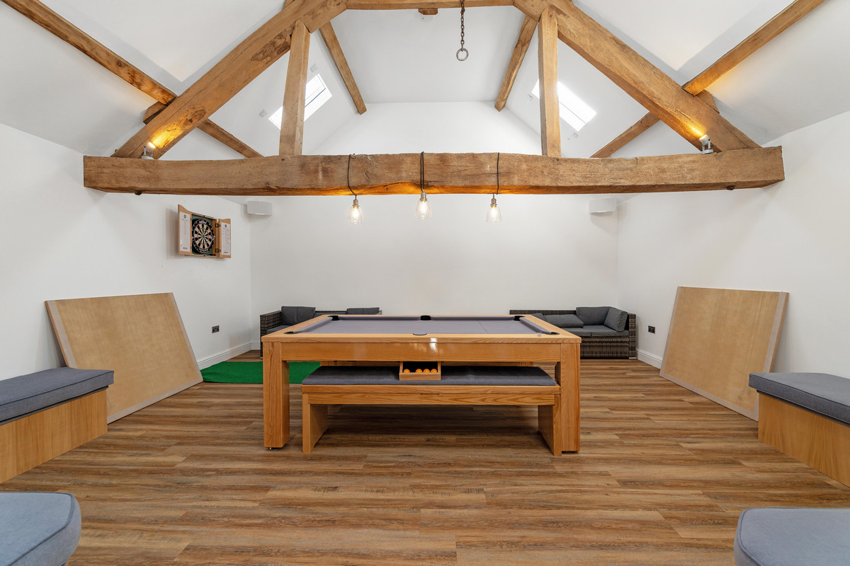 - Additional barn with games room, bar and gymnasium