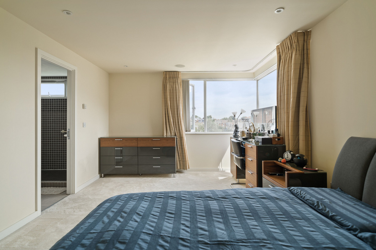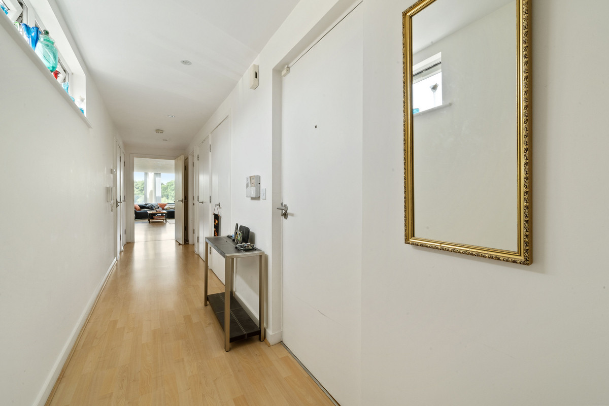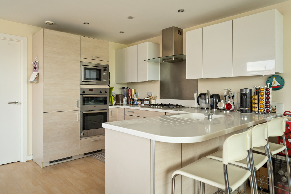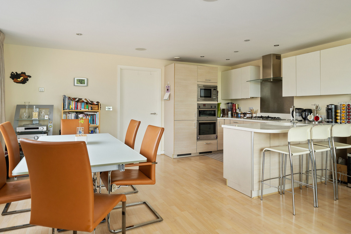 Situated on the second floor, the property totals 1,249sq,ft comprising a spacious open plan kitchen, dining and reception room, two double bedrooms, two bathrooms, extensive hallway storage and balcony area. A generously proportioned, open plan kitchen and reception room is equipped with modern built in appliances and breakfast bar, with a magnificent floor to ceiling extended glass wall bringing natural light cascading into the space and presenting panoramic views over the Thames. Both bedrooms are of a great size benefitting from full scale windows and bespoke built in wardrobes, the master bedroom has a stylish en-suite with walk in shower, with a four piece family bathroom completing the accommodation. A private balcony at the front of the building is the perfect outdoor space to enjoy this picturesque spot.