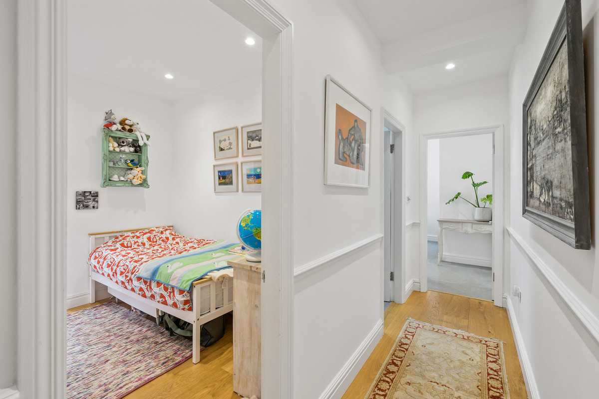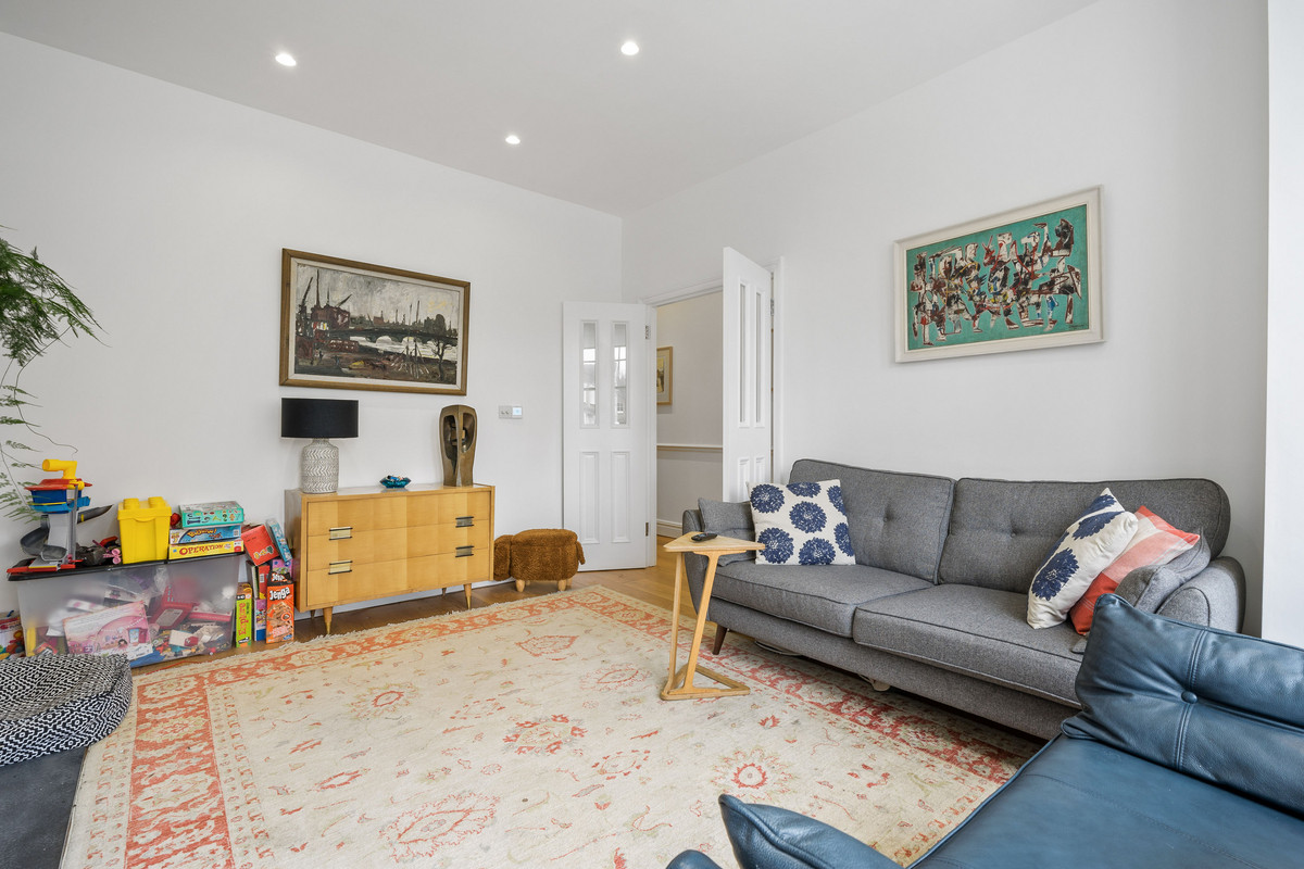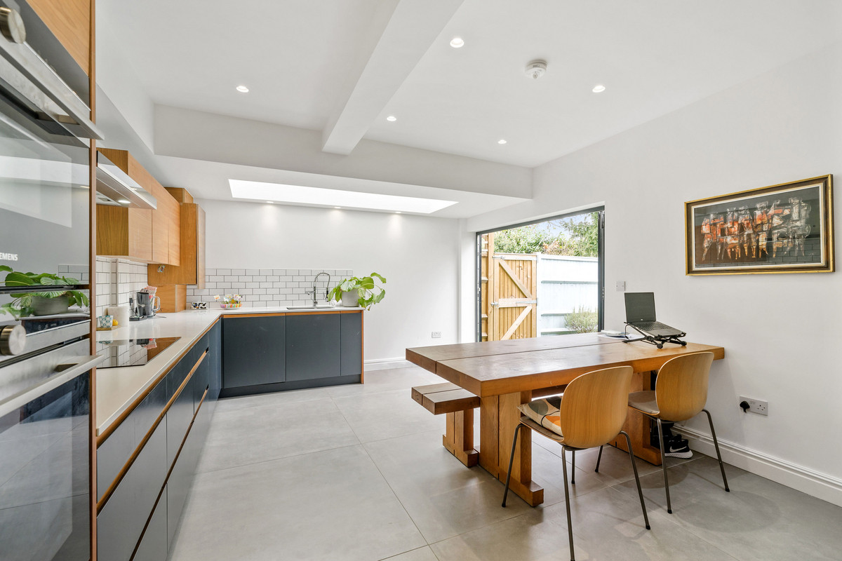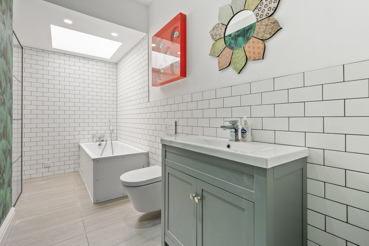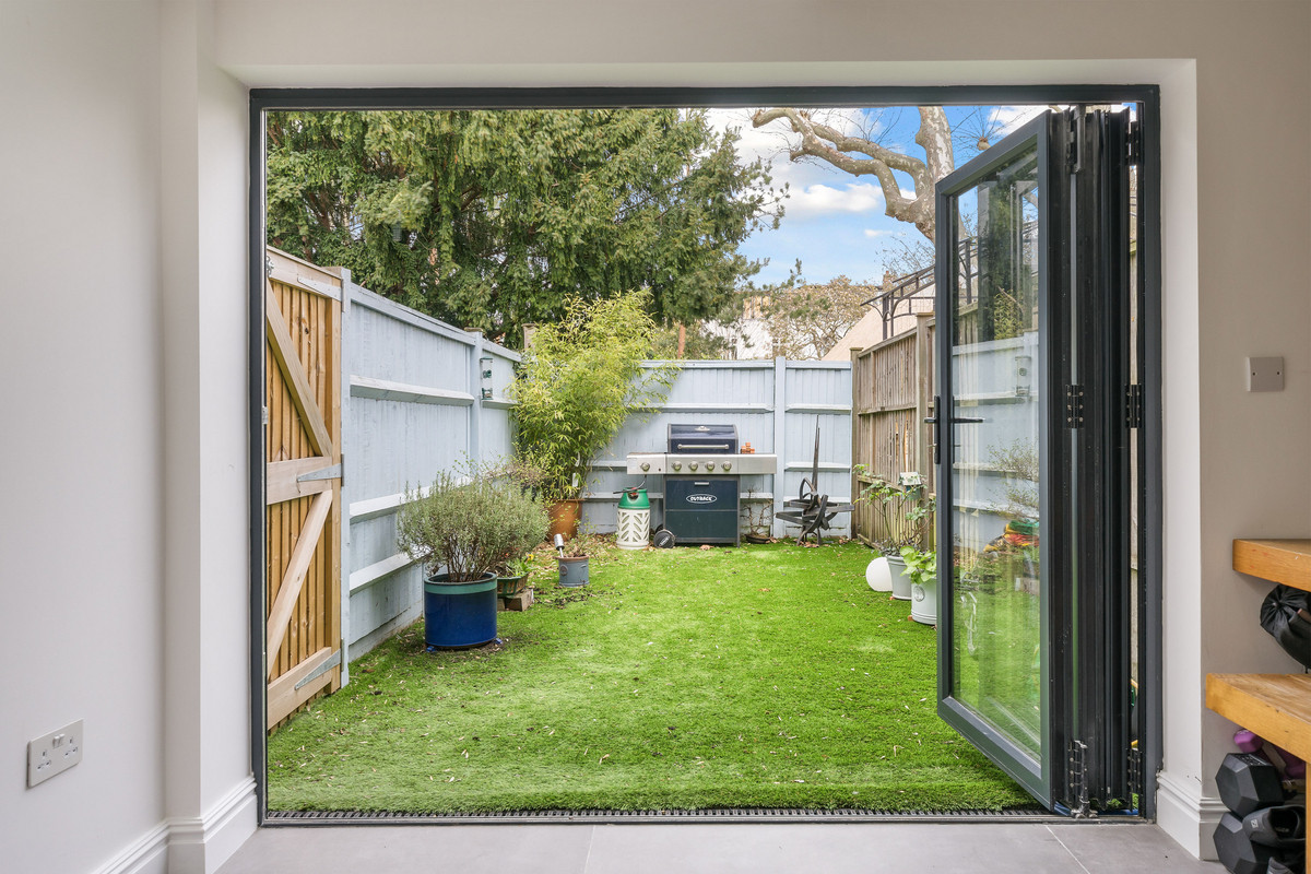 The ground floor maisonette has recently been renovated and extended, totalling over 859sq.ft. Comprising a large and light reception room, two bedrooms, a sophisticated kitchen and dining area and bathroom/ wet room, accommodation is impeccably presented throughout. A bright reception room is accessed via wide double doors from the entrance hall with expansive sash windows, built in fittings and a period feature fireplace. The property is currently arranged to provide two well-proportioned bedrooms, both rooms are served by large floor to ceiling windows or a glass door creating a light and spacious ambience. The bathroom comes complete with wet room, feature wall and skylight. At the rear of the property is an extended contemporary kitchen and dining area, with built in appliances. A skylight and bifold doors provide copious amounts of natural light and lead out onto a private and enclosed garden area.