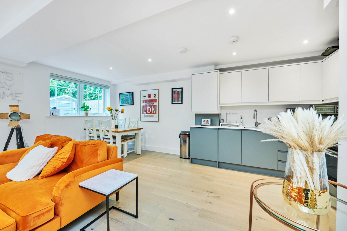 Step inside through your own private entrance and discover a home where modern design meets effortless functionality. The heart of the property is a spacious open-plan reception and kitchen area, flooded with natural light and seamlessly extending onto a private terrace, an ideal space for alfresco dining or relaxing with friends and family. The layout is cleverly arranged over two floors: the ground floor offers two generous bedrooms and a sleek family bathroom, while the lower ground level features two further bedrooms, each with their own bathroom, ensuring privacy and versatility for guests, family, or home office needs.