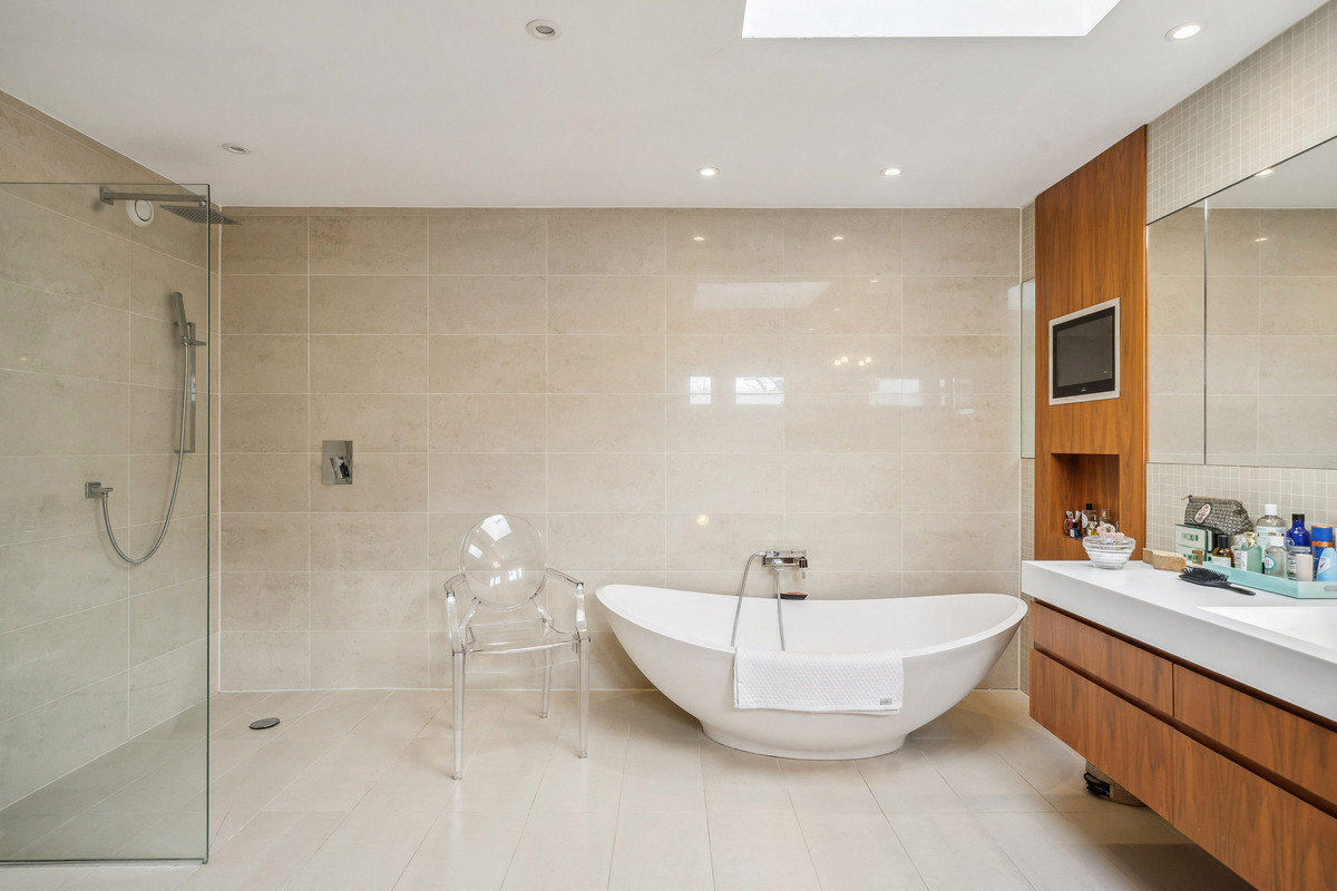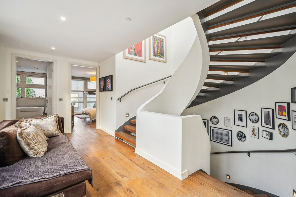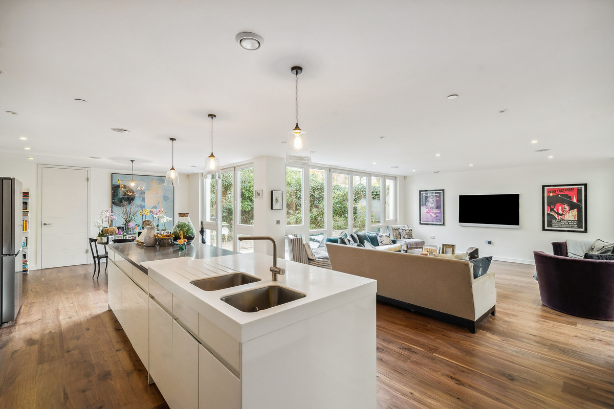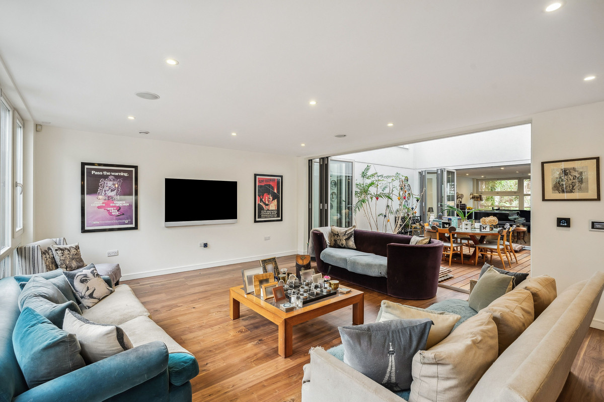 This remarkable contemporary residence, designed by an esteemed architect, sits in close proximity to Hammersmith Bridge.