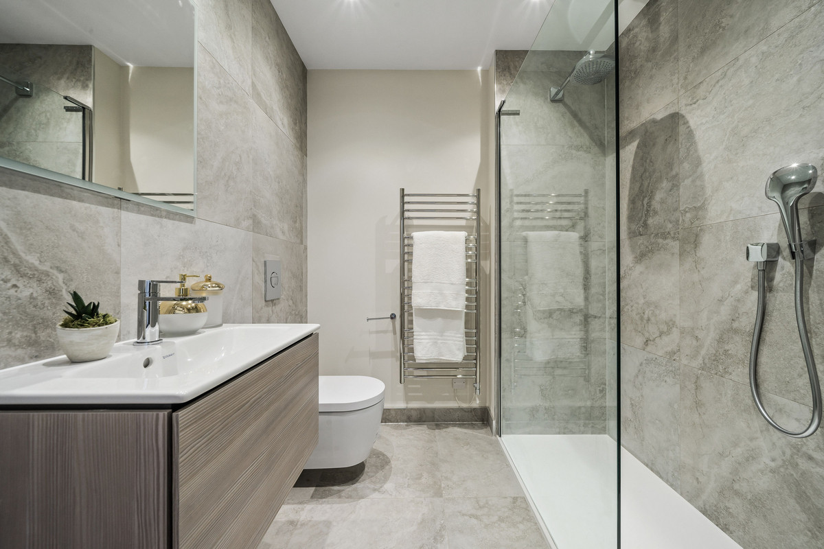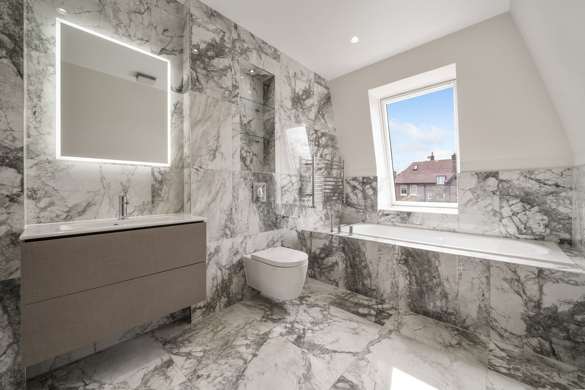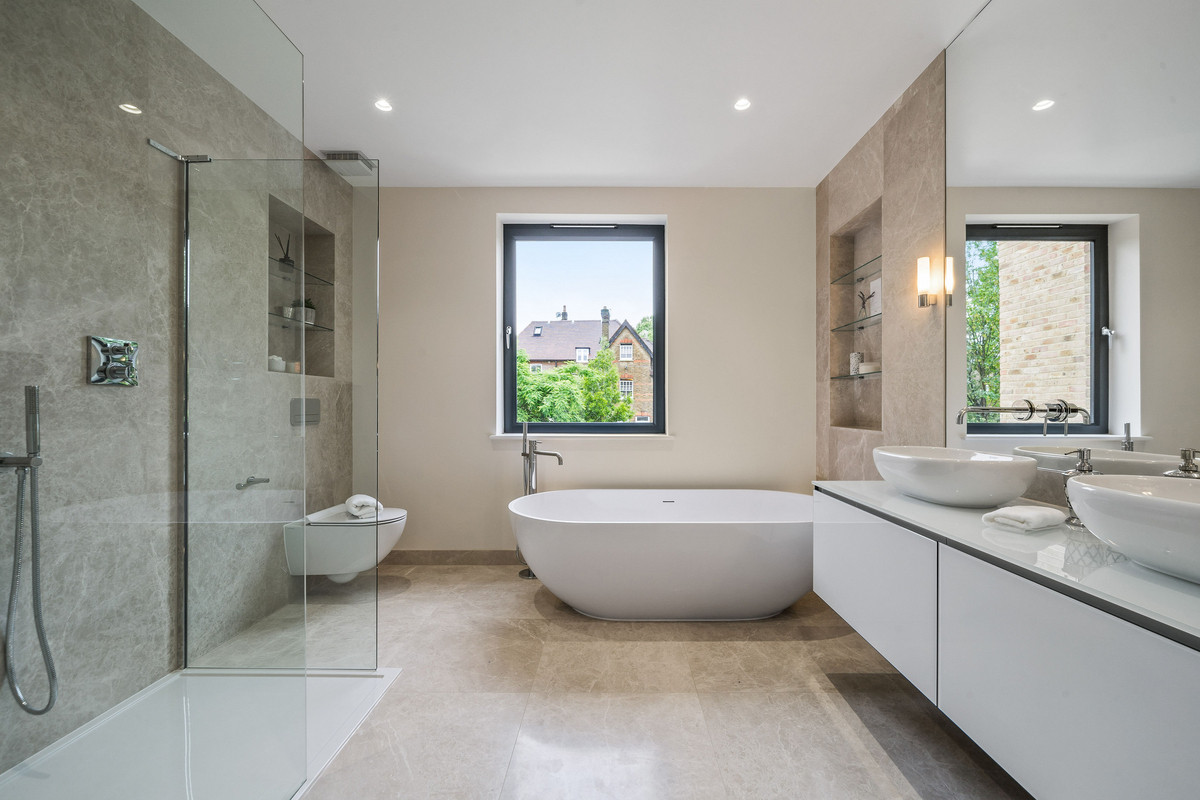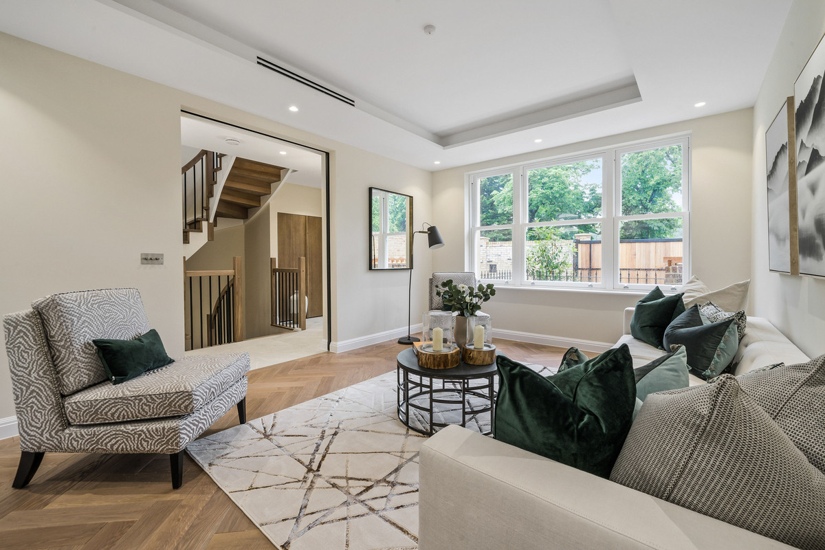 On the first floor there is an incredible principal bedroom with a walk-in dressing room, luxurious en-suite bathroom and a Juliette balcony. A second double bedroom also benefits from a walk-in wardrobe and modern en-suite shower room. The second floor hosts two further double bedrooms as well as a modern family bathroom. Additionally the property benefits from gated off-street parking for two cars, utility/plant room, underfloor heating, air conditioning and solar panels.