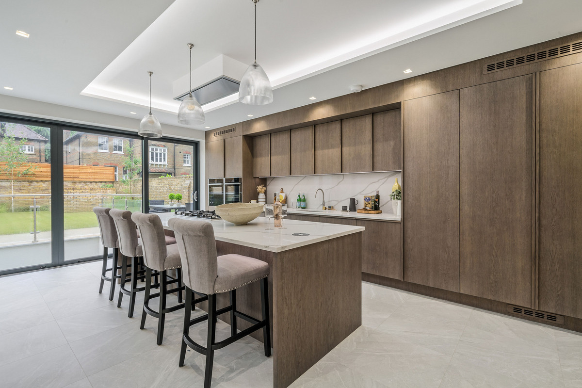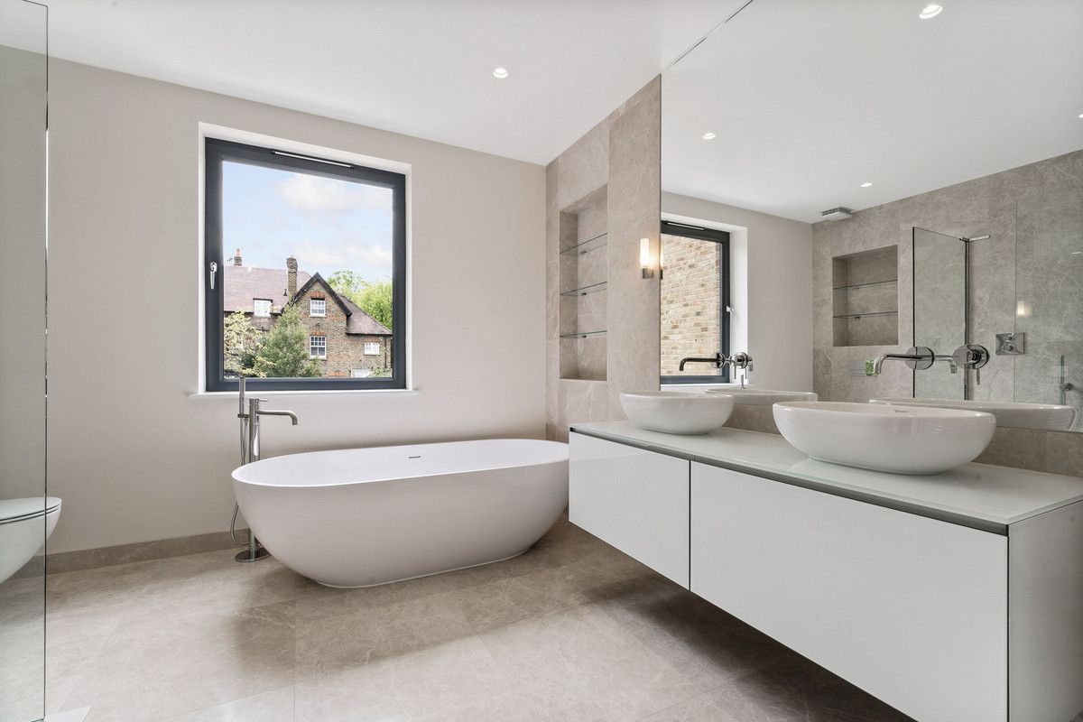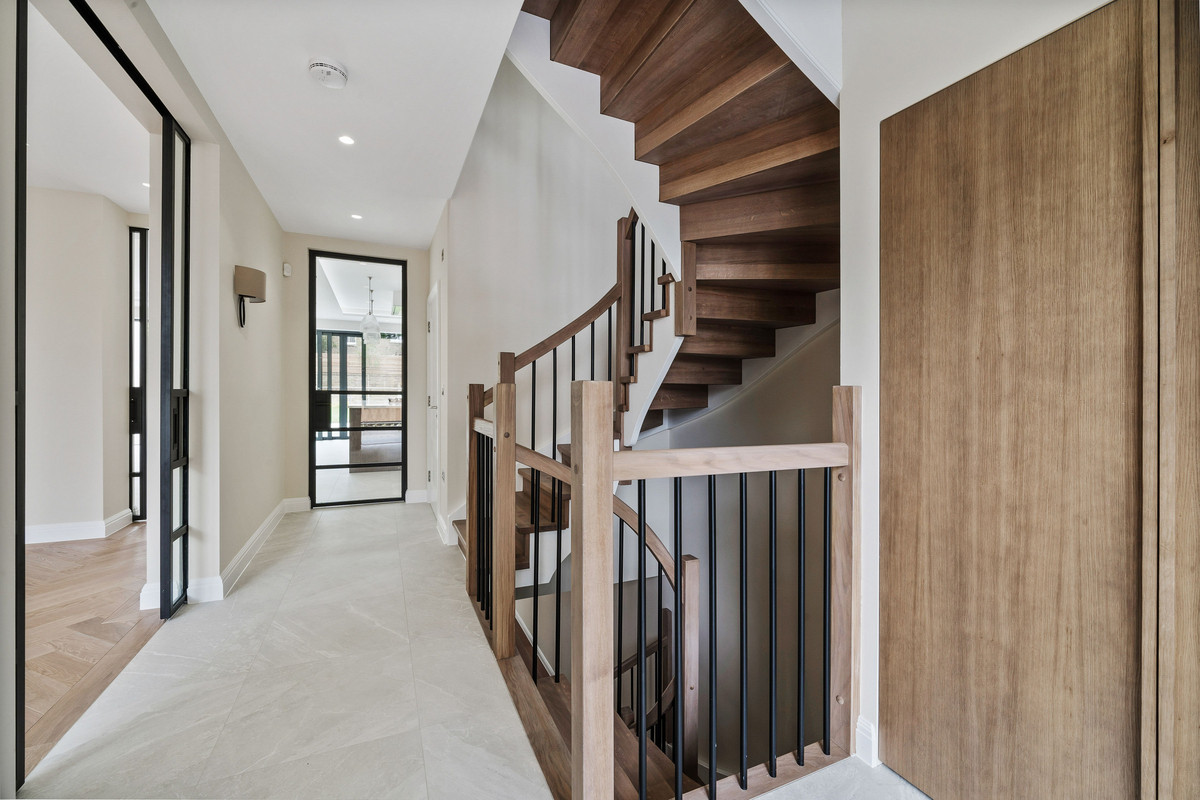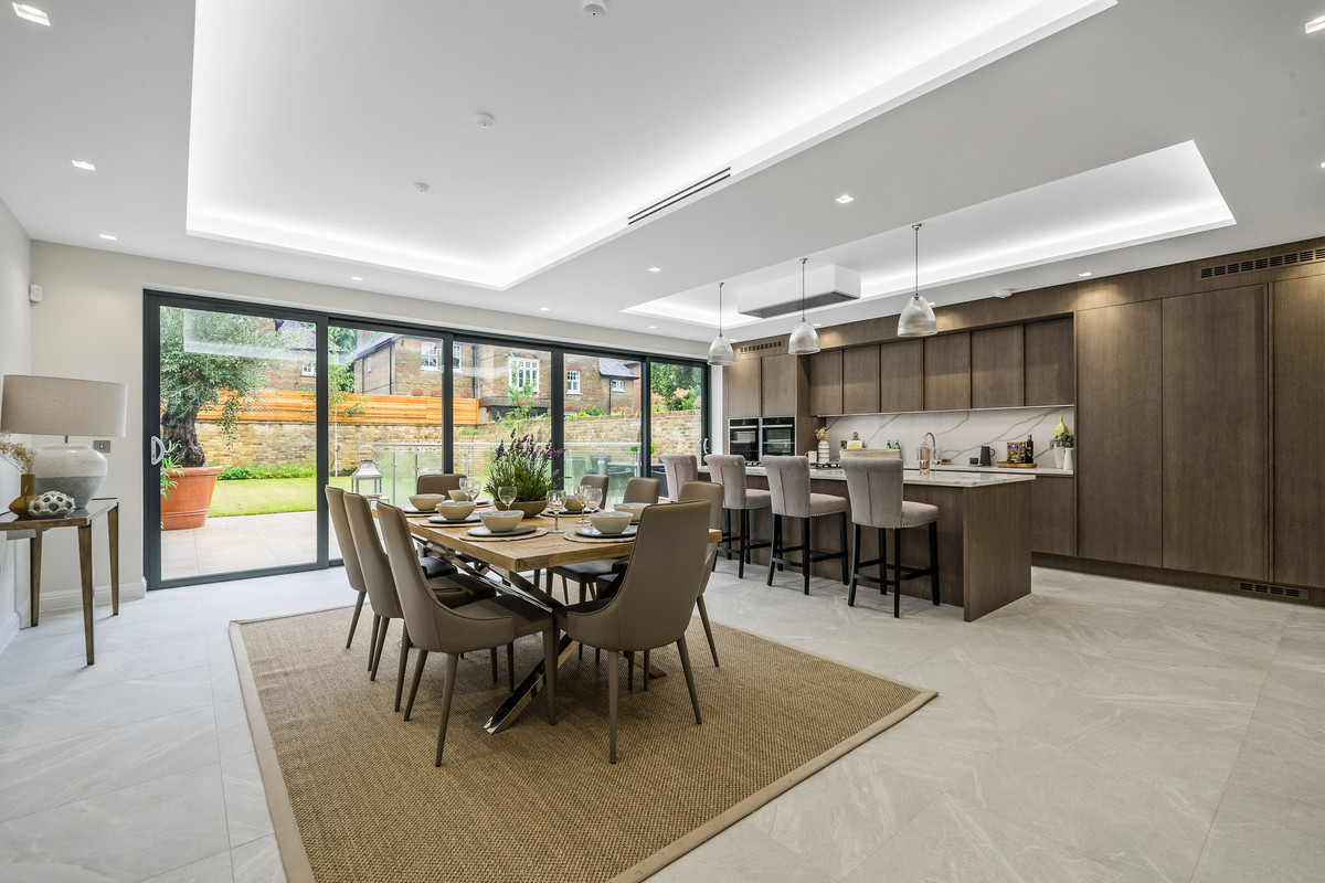 A brand new five bedroom semi-detached family home located on Queens Ride, Barnes. This gorgeous family home has been finished to an exceptional standard and boasts over 3400sq ft of internal living space. On the ground floor there is a front reception room complete with oak herringbone flooring and a stylish gel fireplace. To the rear of the property is a contemporary bespoke kitchen with oak units, Carrera marble worktops and a range of integrated appliances along with sliding doors leading to a south facing rear garden.