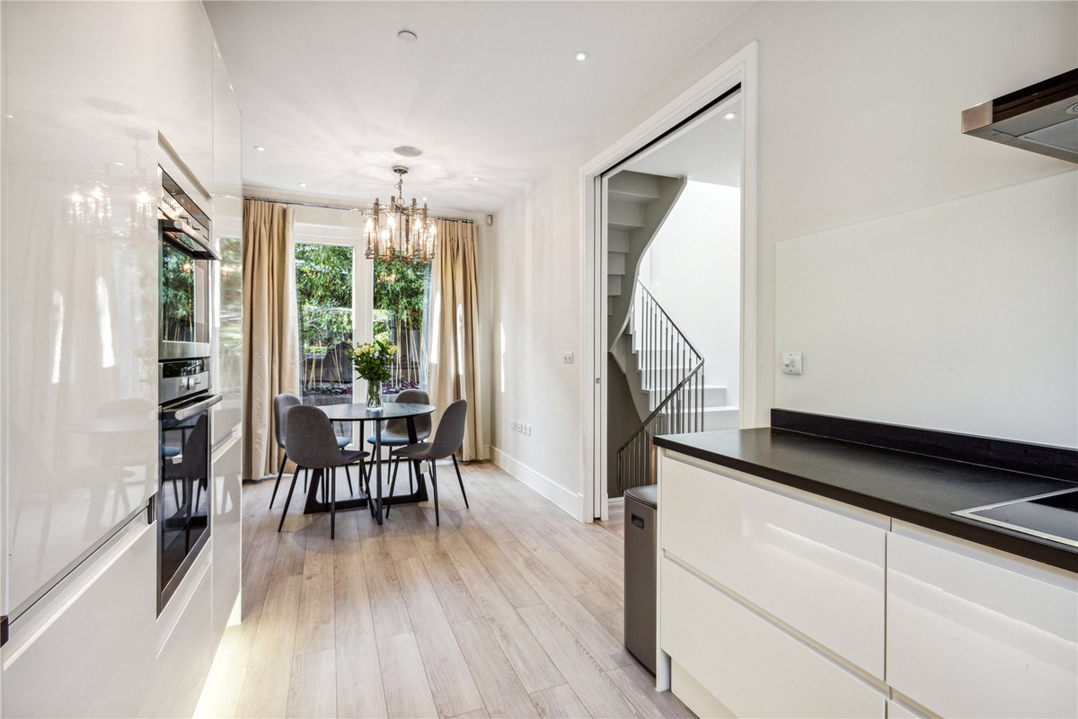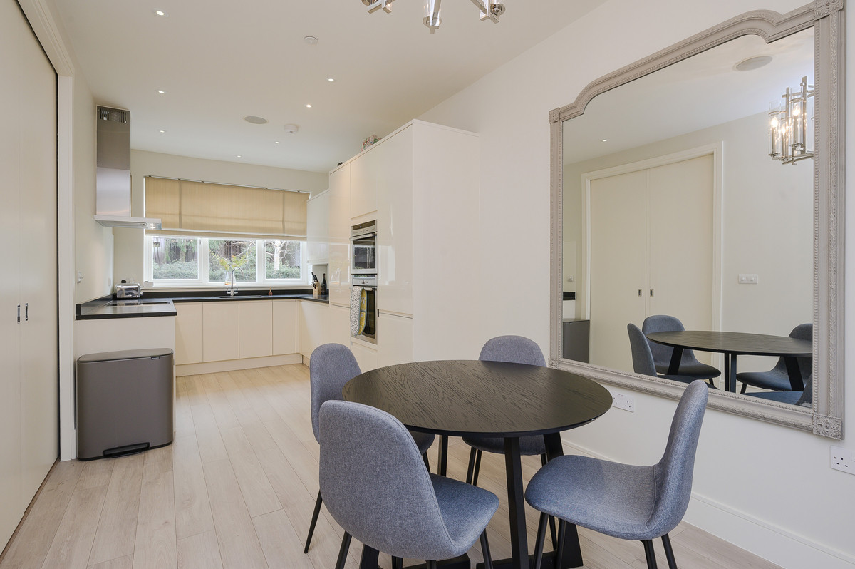 The kitchen features a range of wall and base-level units with honed black granite worktops and a full range of Siemens, Neff, and Bosch appliances. Bathrooms have designer tiled floors and full-height tiled walls, white ceramic Catalano Verso sanitary furniture and Crosswater, Gerberit & Clearwater chrome fittings. EPC = B