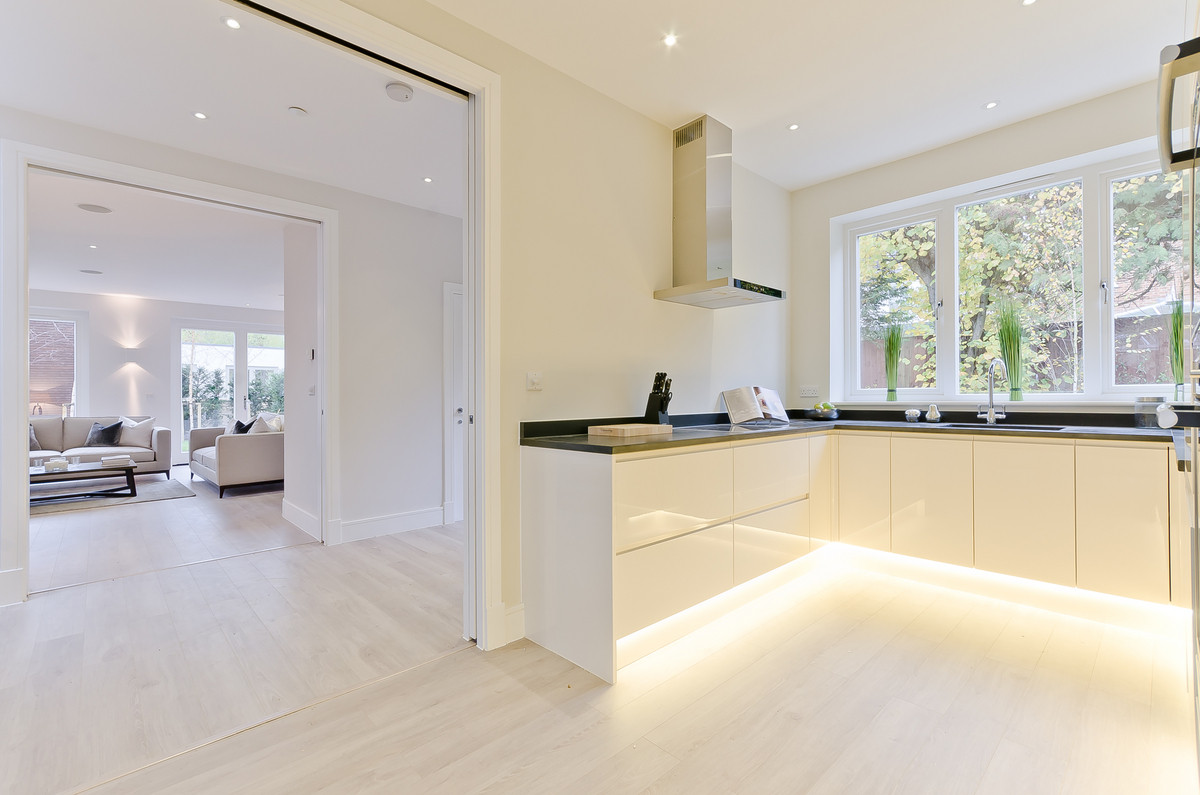 Large full-height doors which open out onto the landscaped gardens allow you to bring the outside in, as well as give extra living space for eating al fresco, or simply relaxing.