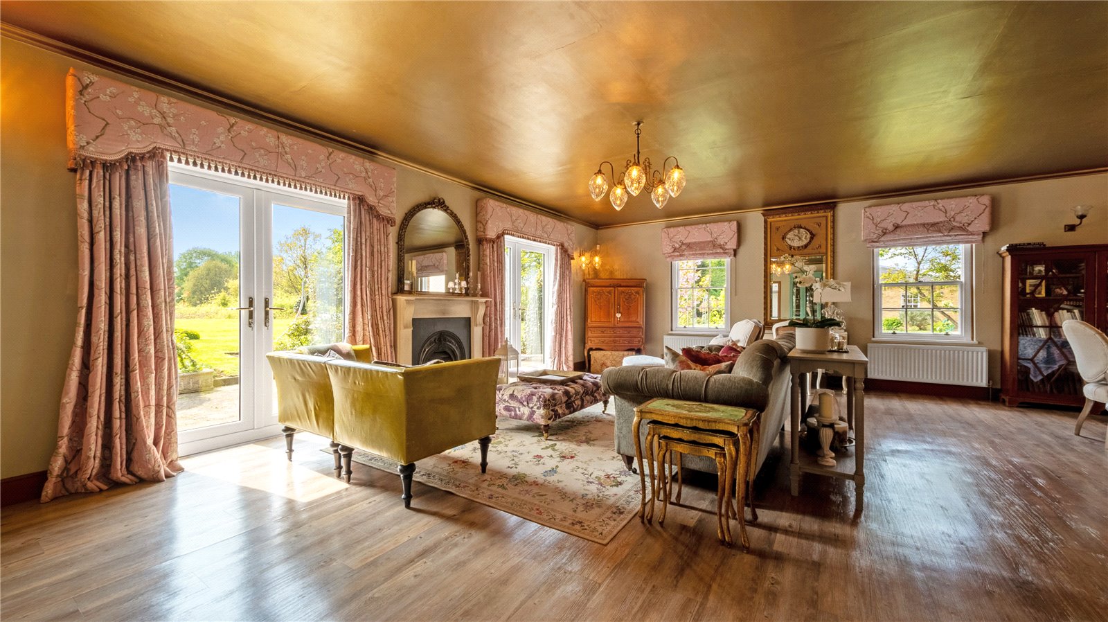 The kitchen is a masterpiece of design and functionality, featuring quartz worktops, a butler sink overlooking the garden and a premium Lacanche cooker equipped with a plancha, electric oven, warming drawer, large gas oven and extractor hood. The built-in larder unit and ample hidden storage, including concealed bin drawers, ensure both style and practicality.