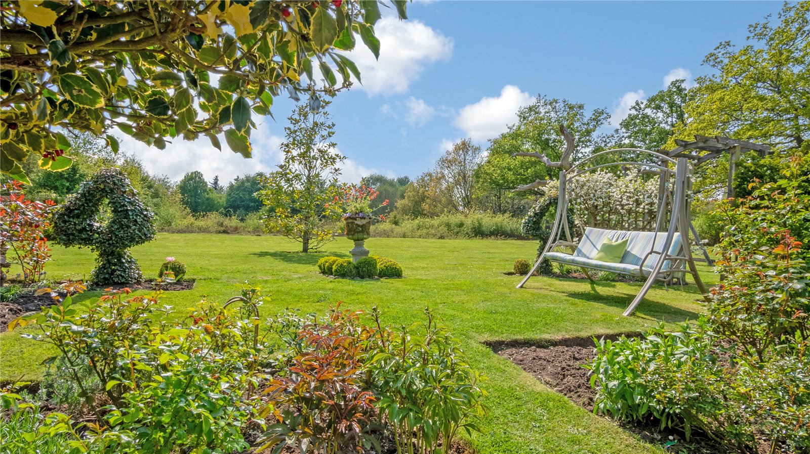 The garden at East Lodge is a serene oasis; backing onto Dyrham Park Golf Club and surrounded by green open space. The beautifully landscaped grounds offer year-round beauty and include a terrace perfect for alfresco dining and hosting. The garden is adorned with gorgeous plants and shrubs including a grandiflora magnolia tree, twisted willow and rose and herb gardens.