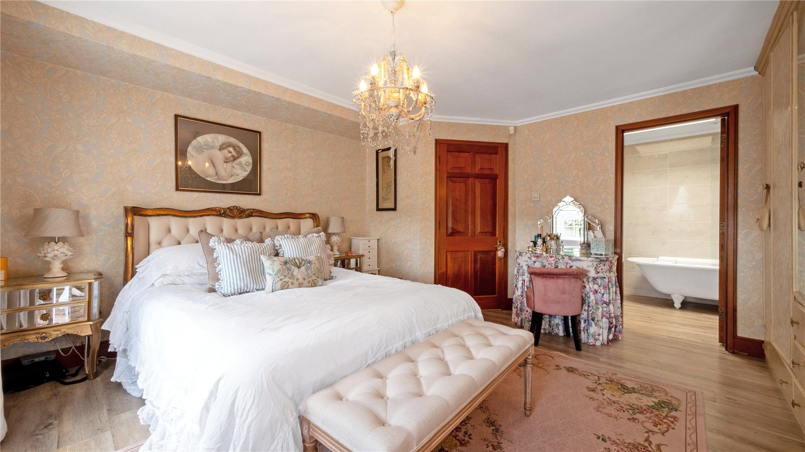 The snug, located in the original lodge, features stunning mahogany floors and period fireplace. The snug has previously served as a double bedroom, nursery, and now as a relaxed retreat. Above it, one of the double bedrooms enjoys the same historic charm. This self-contained section of the home is perfect for live-in staff, a guest suite, or a teenager seeking independence. The flexibility of the space allows for the property to grow and change alongside its residents, as it has done for the past 38 years.