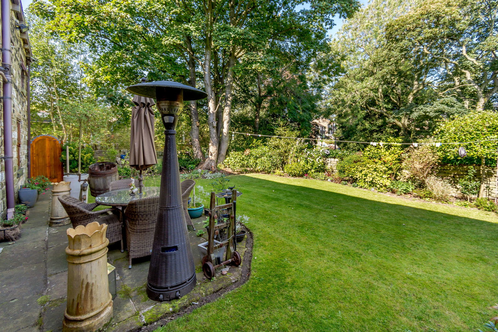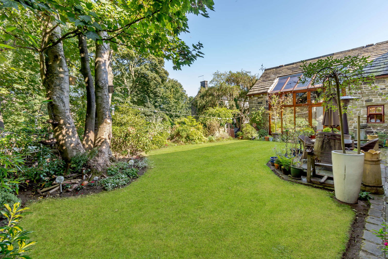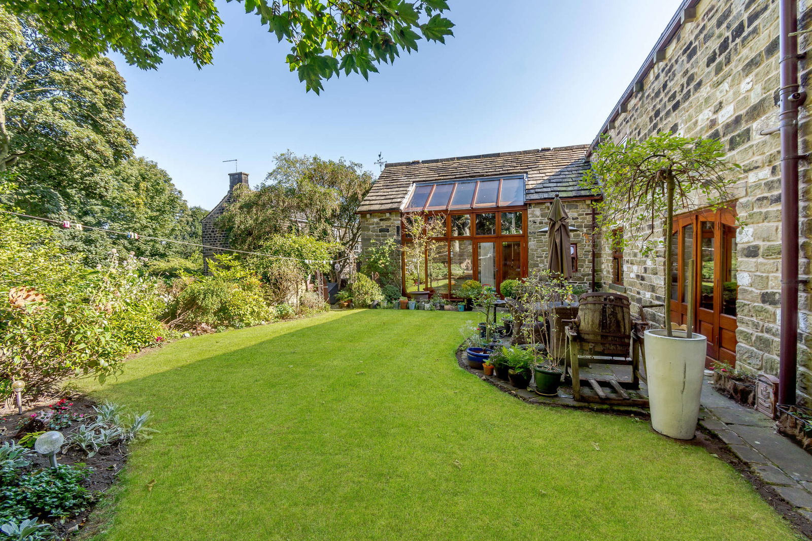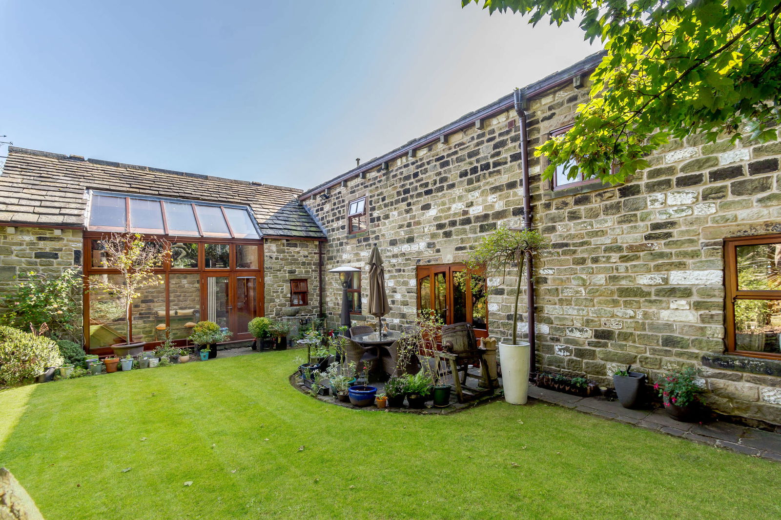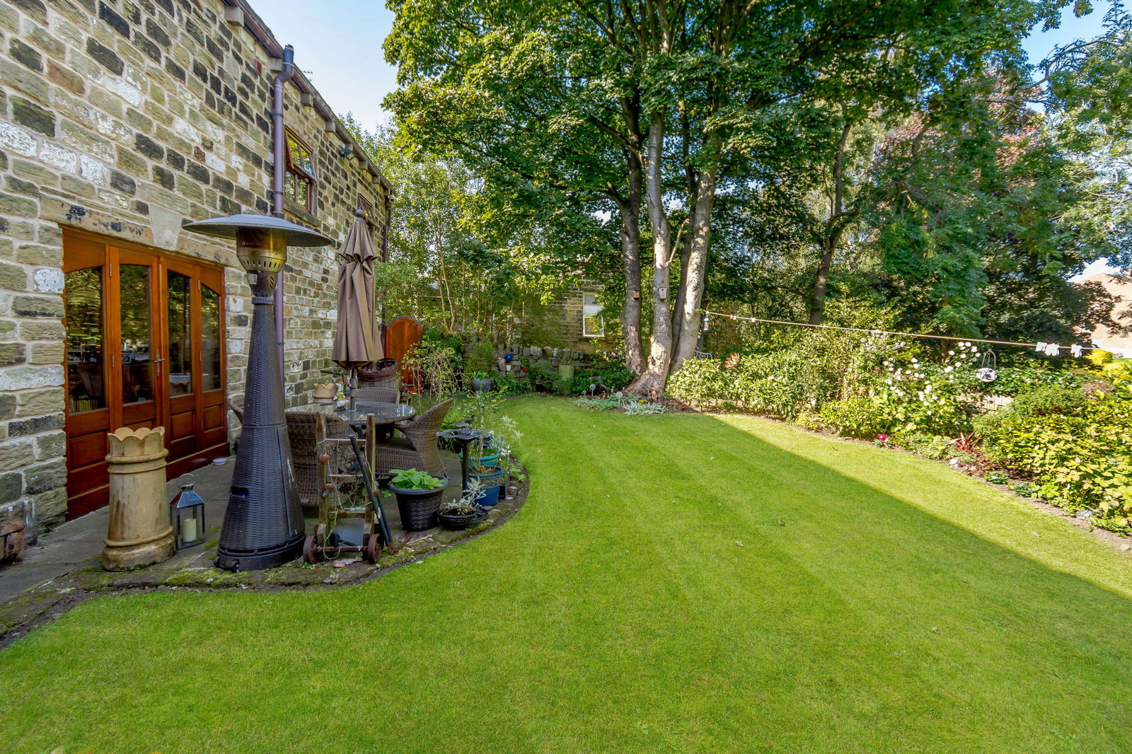 The property occupies a private set back position. A stone cobbled driveway provides off road parking for several vehicles and giving access to the garage. The front garden is set within a stone walled boundary with a variation of specimen flowers, shrubs, trees, and an ornamental pond, all of which create a stunning low maintenance and private boundary. To the rear aspect of the house, enjoying a private enclosure is a garden mainly laid to lawn set within a dry stone wall boundary. There are established shaped flower borders, stone flagged walkways and a Yorkshire Stone flagged patio. A pedestrian gate gives access to the side elevation.