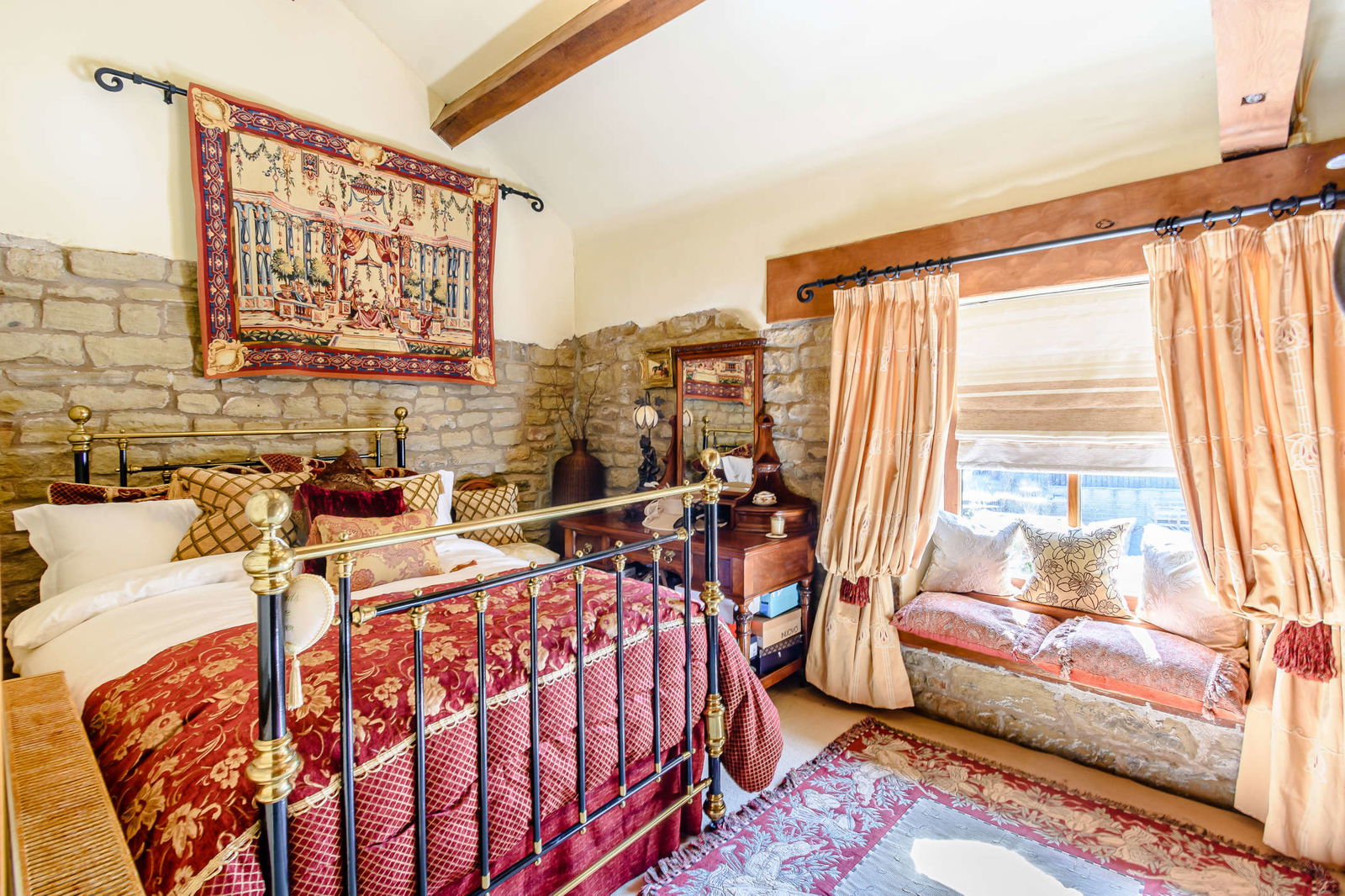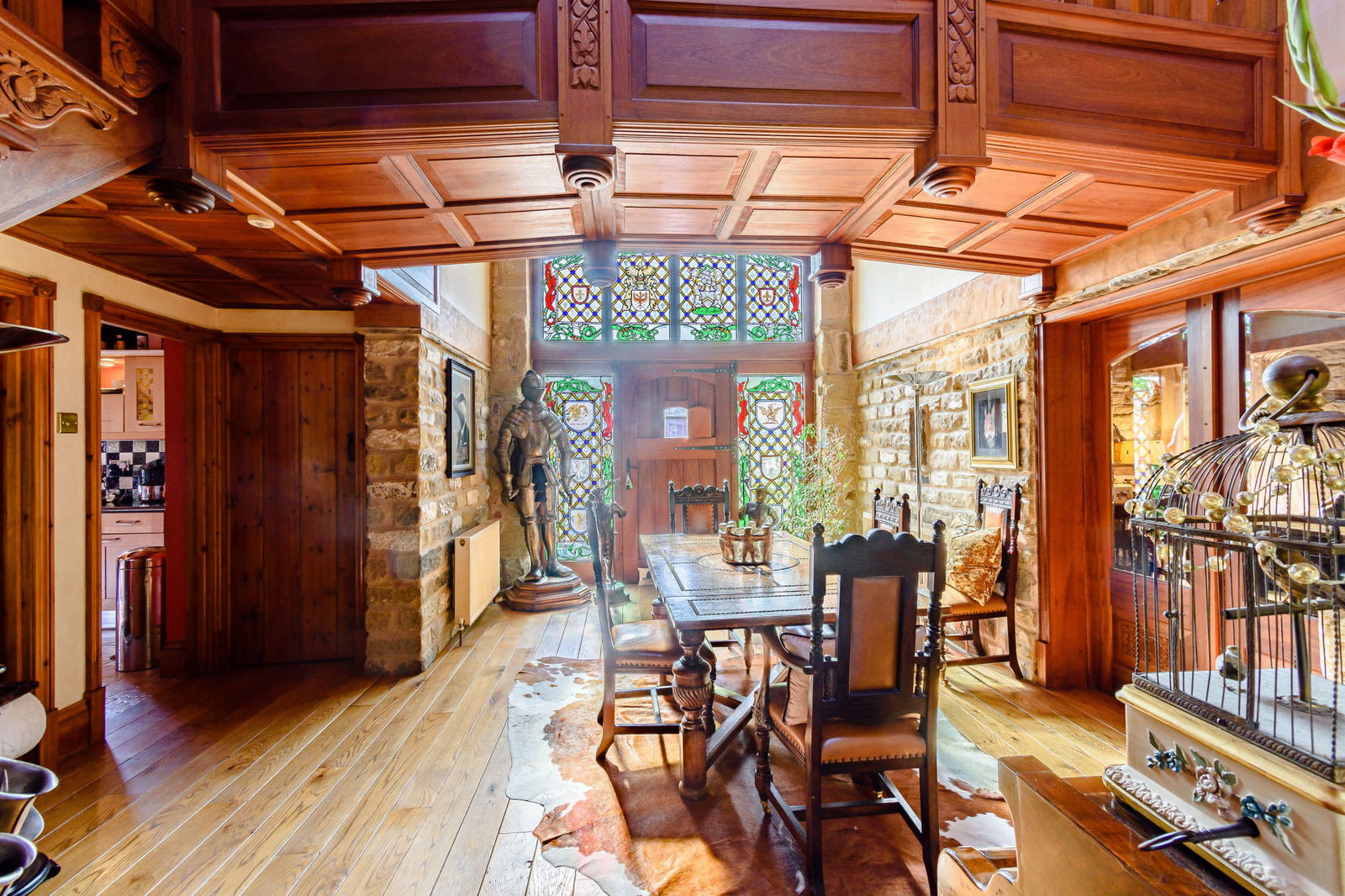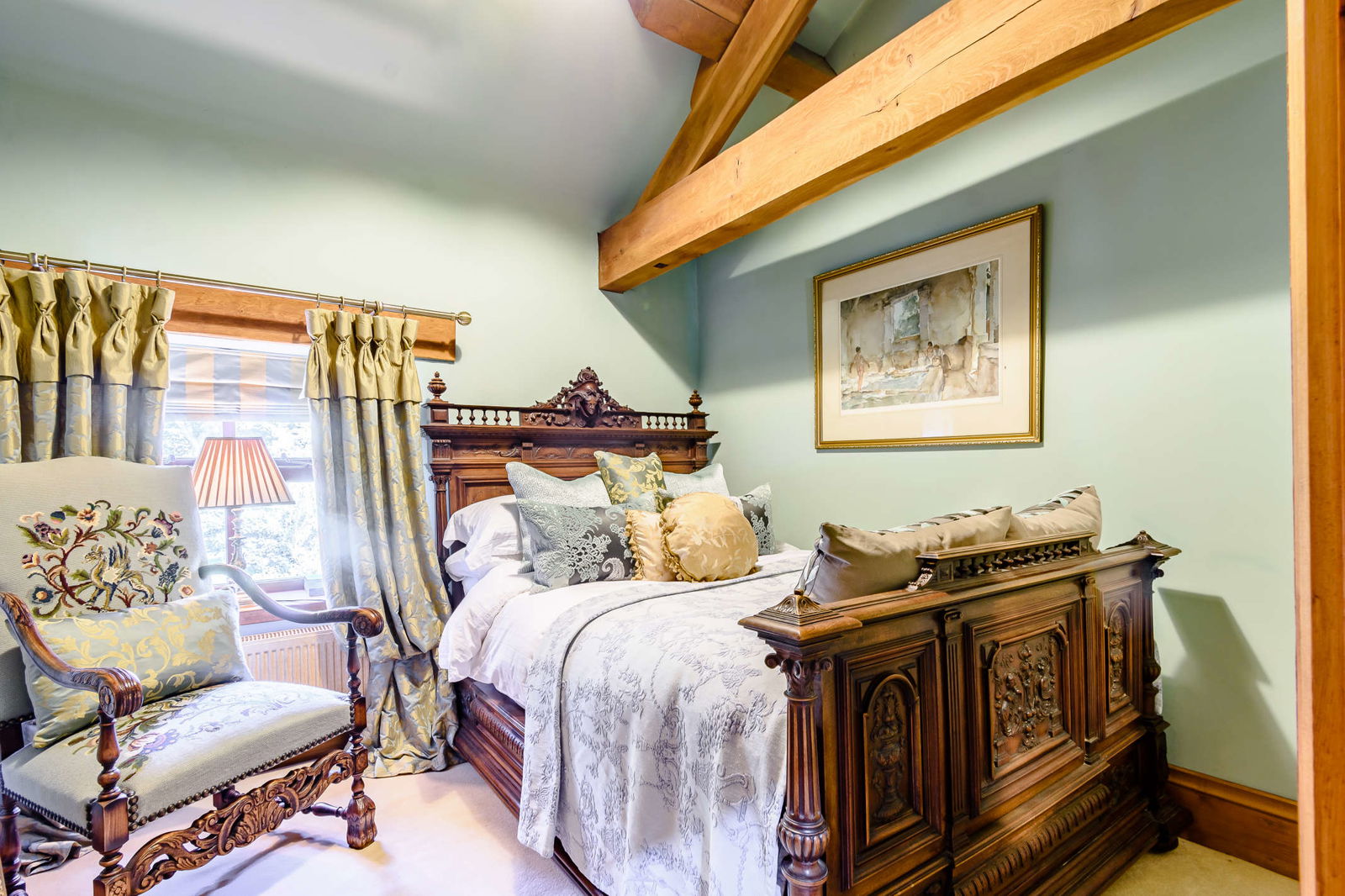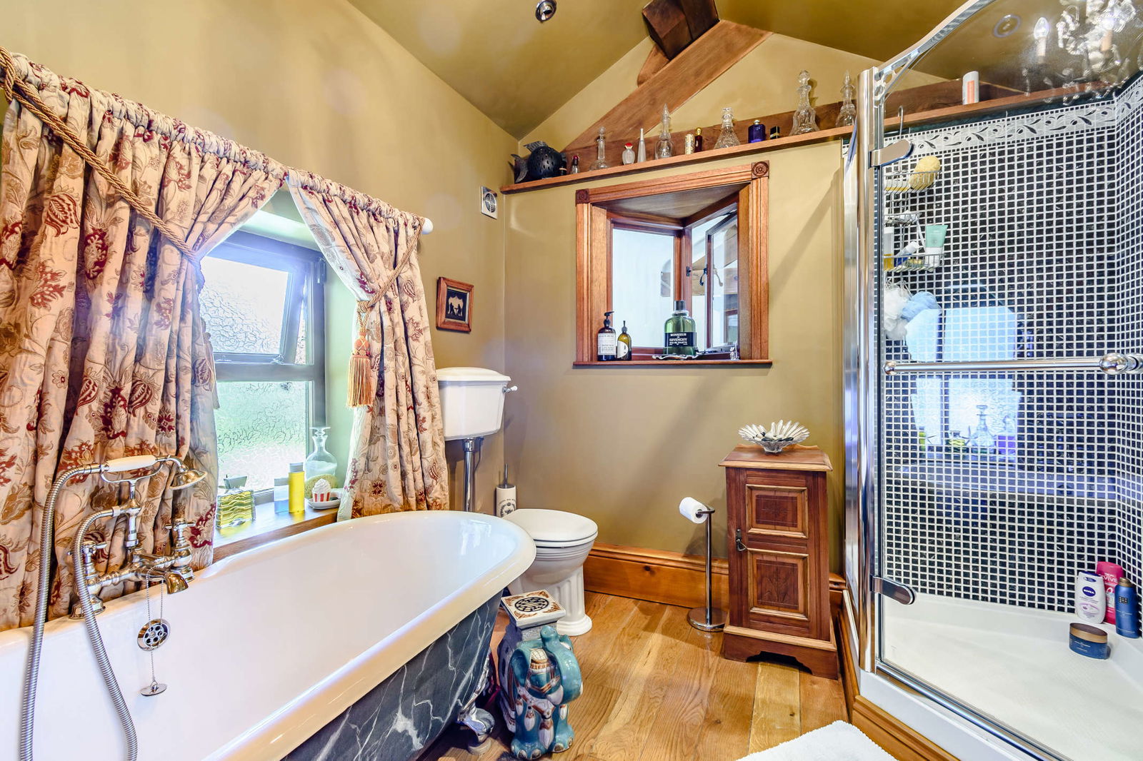 An impressive principal bedroom suite has exposed timbers into the apex of the ceiling, exposed stone to one wall and windows to both front and rear aspect. En-suite facilities present a four piece suite consisting of a free standing roll top bath with claw feet, a low flush W.C, a step in corner shower with Victorian style showerhead and a pedestal wash hand basin. The room has an oak floor, a traditional styled towel radiator, an opaque window and an internal window which overlooks the dining hall. To the remainder of the first floor there are three additional double bedrooms. The front bedroom has exposed stone to the wall and timbers into the apex of the ceiling. A window seat overlooks the garden. The remaining two bedrooms have exposed timbers into the apex of the ceiling and windows to the rear commanding a delightful outlook over the garden. The Family Bathroom Is presented with a four piece suite consisting of a free standing roll top bath, a pedestal wash hand basin, low flush W.C and a step in corner shower unit. This room has exposed timbers into the apex of the ceiling, an oak floor and a Velux skylight window.