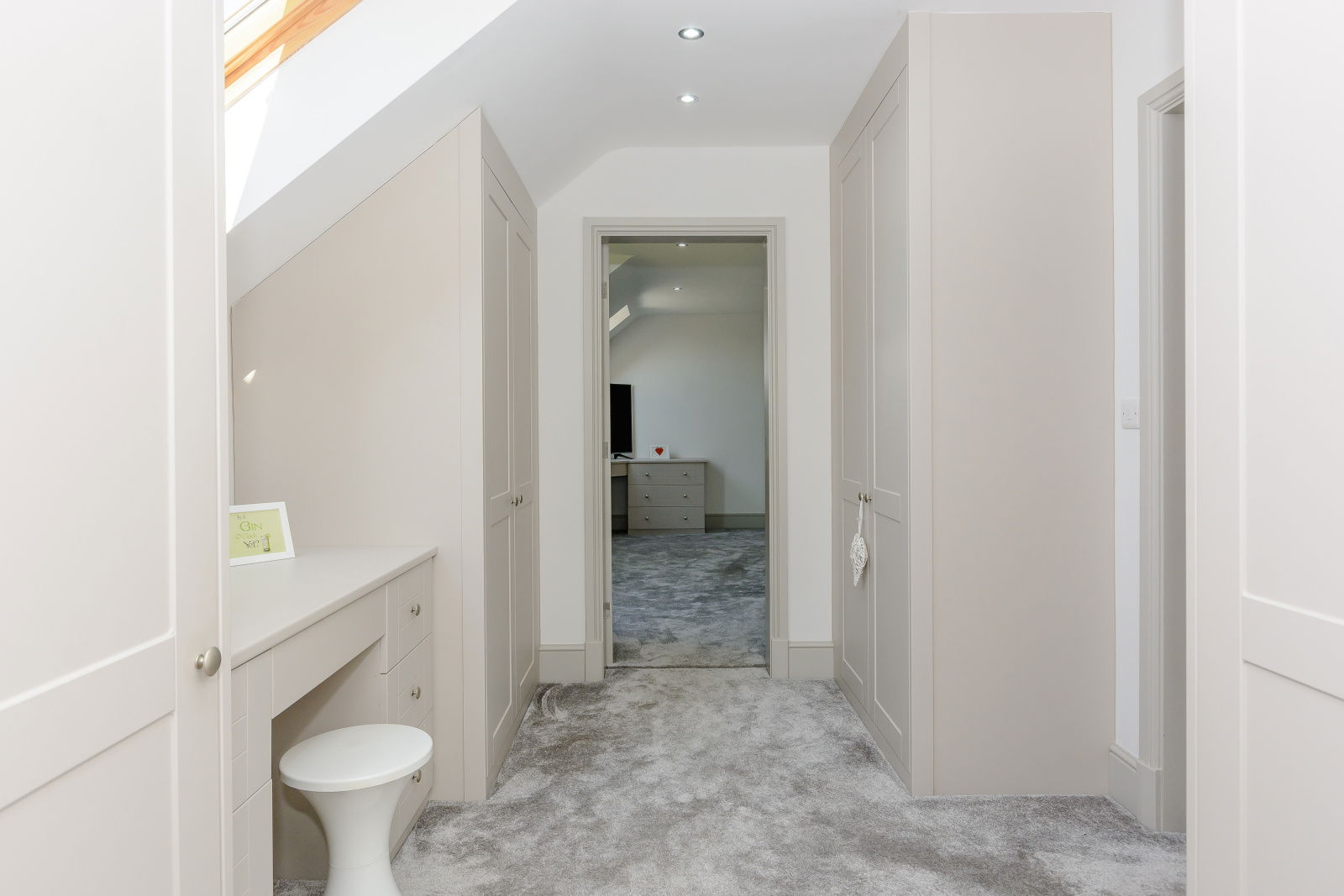 The Master Suite offers generous proportions, is accessed via a dressing room which is presented with furniture including wardrobes, drawer units and a dresser. The bedroom has windows to both front and rear aspects, the front commanding stunning cross valley views whilst the En- suite is presented with a four piece suite including a free standing double ended bath, a low flush W.C, a wash hand basin with vanity drawer beneath and a walk-through 'rainforest shower' with fixed glass screen. This stunning room has full tiling to the floor, majority tiling to the walls, a contemporary styled towel radiator and a window which overlooks the rear garden.