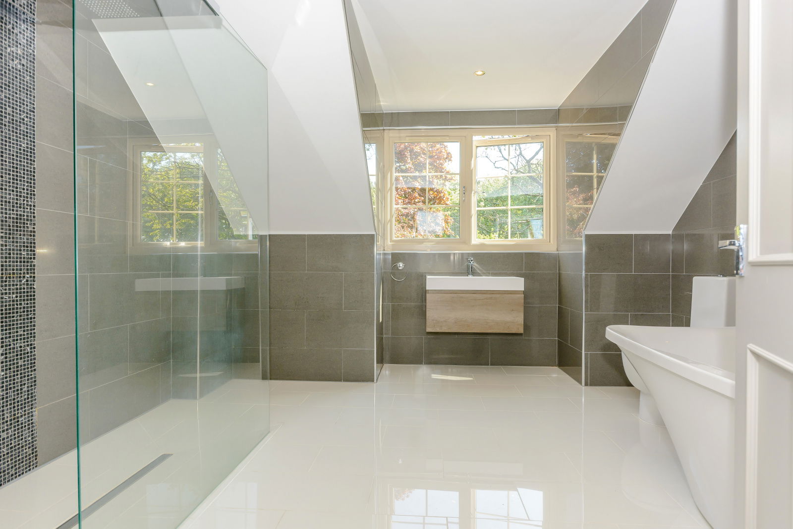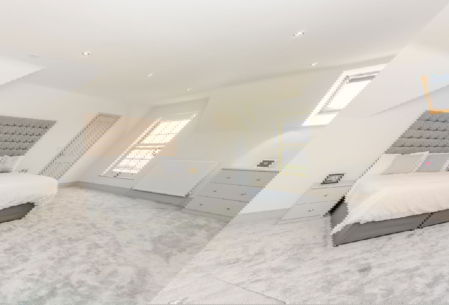 Bedroom two is a rear facing double room with windows to two aspects overlooking different aspects of the grounds whilst En- suite facilities provide a three piece suite. The third En-suite bedroom is situated to the front aspect of the house, enjoys a double aspect with windows to two elevations, the front commanding views towards Wentworth Castle and beyond. En-suite facilities comprise a modern three piece suite finished in white.