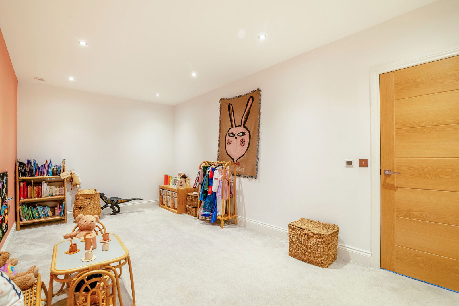 The playroom offers versatile accommodation and would an excellent home cinema or games room. A cupboard is home to the pressurised cylinder tank and manifolds for the under floor heating.