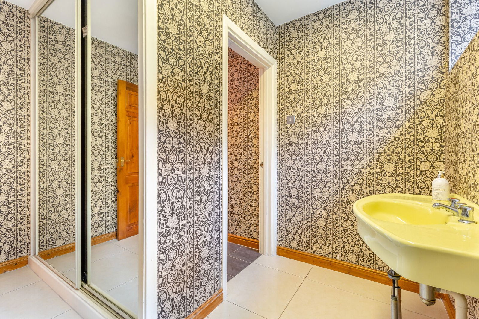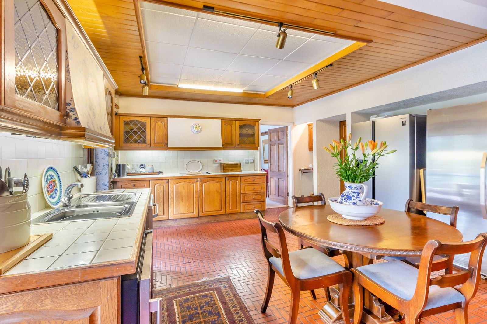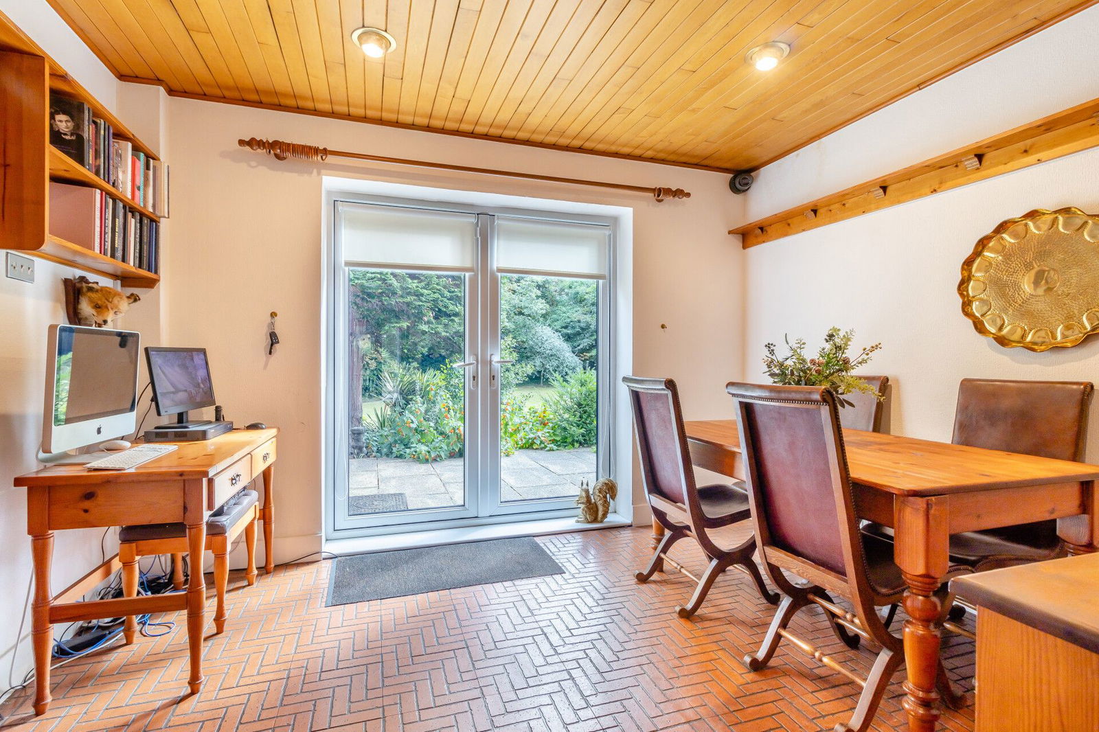 The dining room has full tiling to the floor continuing through to the kitchen and French doors which open onto a flagged terrace at the front aspect of the home, overlooking the garden enjoying a south facing aspect.
