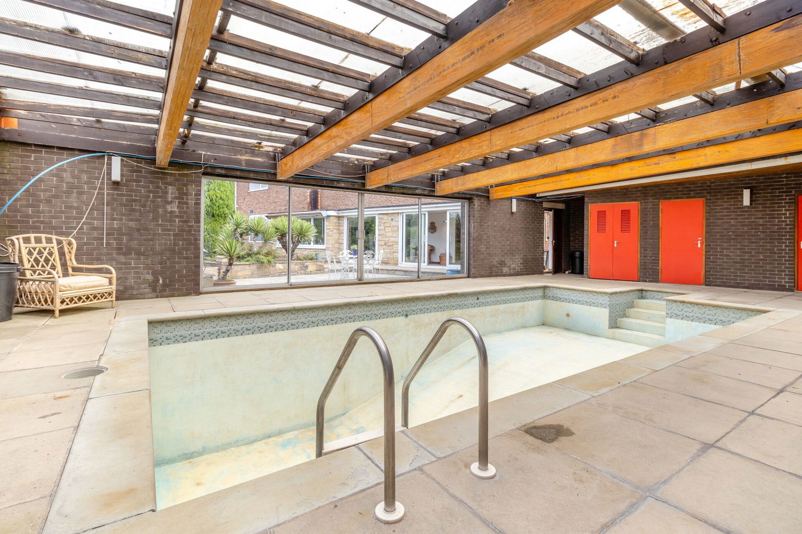 A purpose-built leisure suite needs modernisation and incorporating a swimming pool. Patio doors open directly onto the garden terrace, a cupboard houses the boiler for the pool and there is a separate W.C, shower room and store.