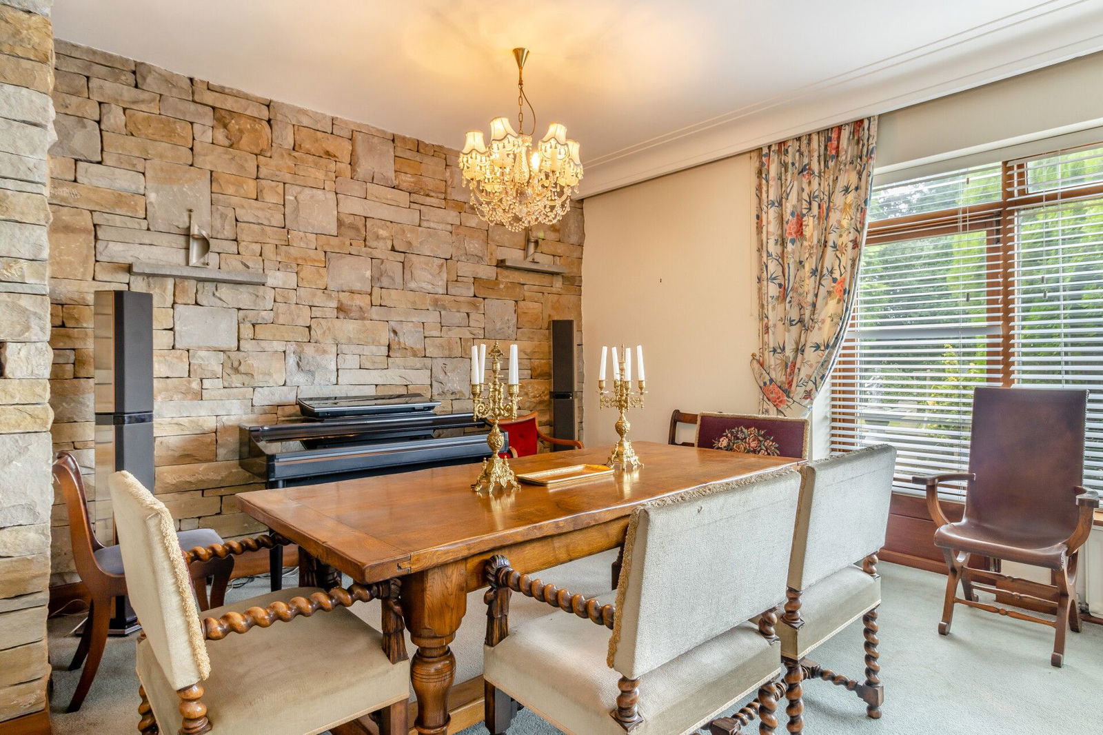 The lounge offers exceptional proportions, has windows to both front and rear aspects inviting an abundance of natural light indoors, the rear windows commanding a delightful view over the gardens. This room has exposed stonework to one wall, a glass fronted display cabinet and a solid fuel open fireplace.