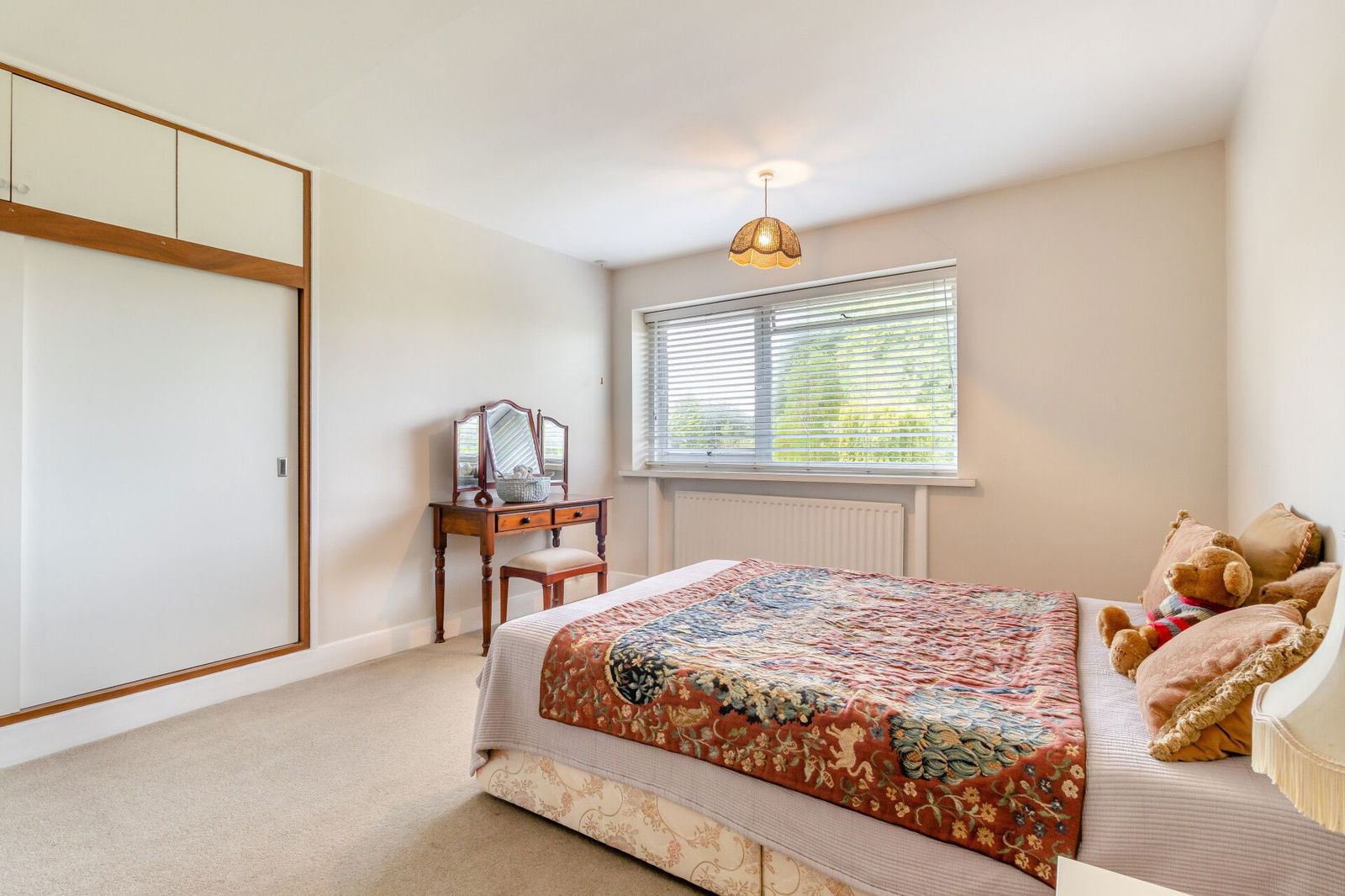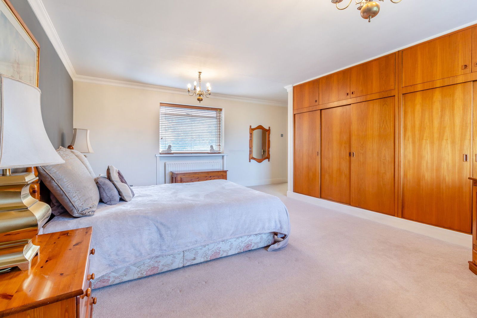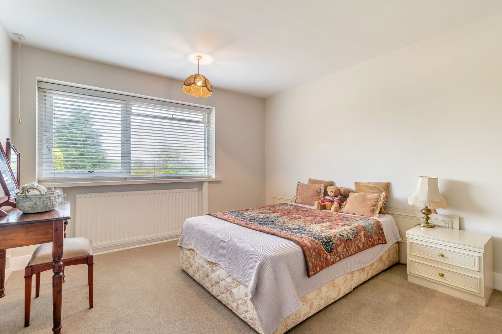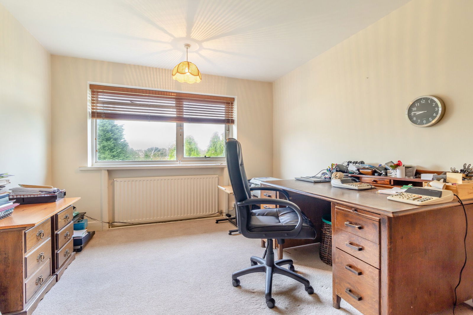 A central landing has a window overlooking the front garden. Off the landing there are five bedrooms; the principal room offering exceptional double proportions with windows to the front and rear aspects, the rear commanding long distance views whilst having fitted wardrobes to the expanse of one wall. An en-suite bathroom is presented with a jacuzzi bath, a low flush W.C and a wash hand basin. The fourth bedroom is currently used as a home office and is positioned next to the main bedroom resulting in the option make a fantastic dressing room with a window overlooking the rear garden.