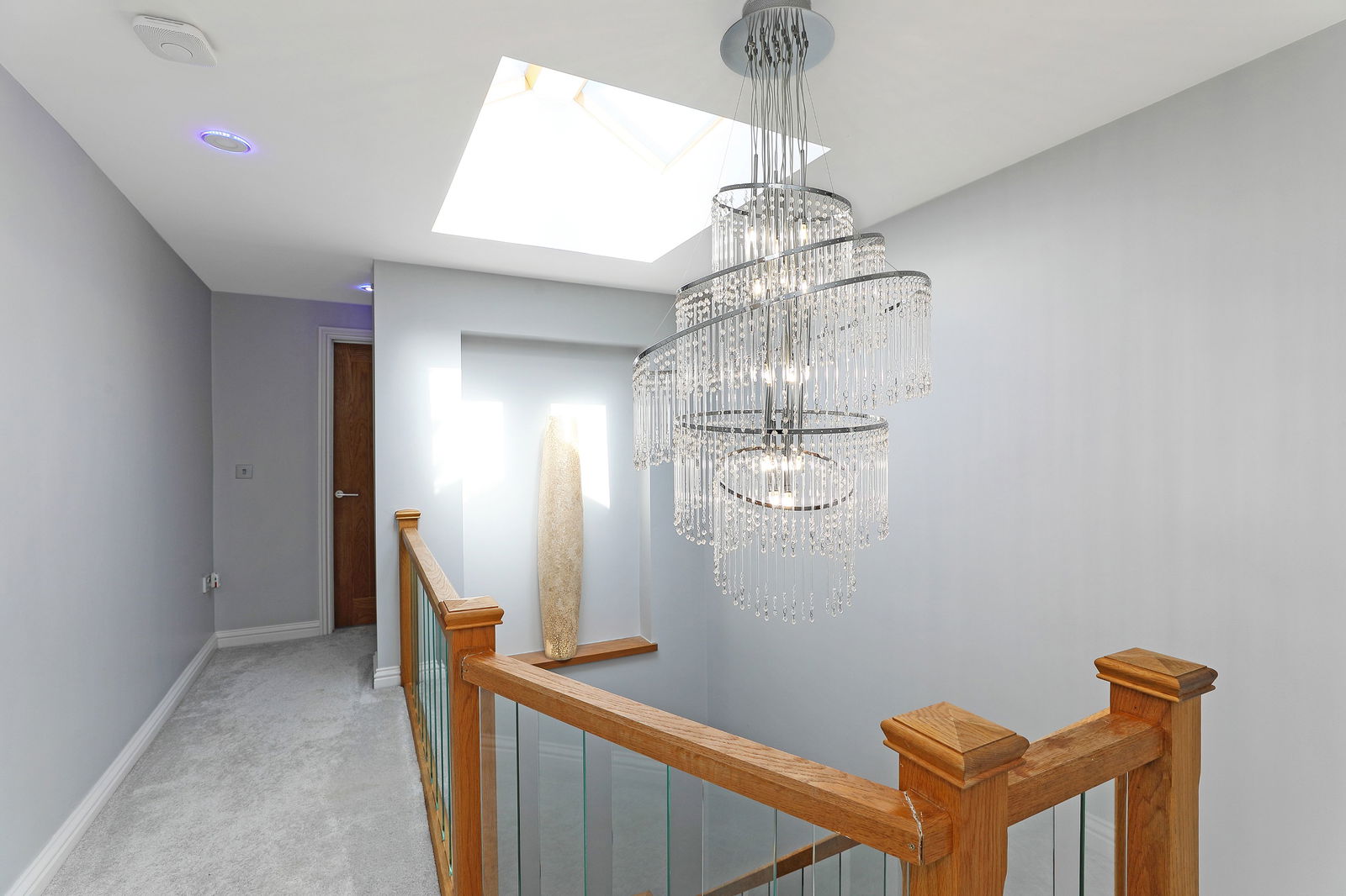 An entrance door opens to an impressive reception hall which has a staircase rising to a gallery landing. A cloakroom presents a modern two piece suite incorporating a wall hung W.C and a wash hand basin with vanity draw beneath, the room having complementary tiling to the walls and floor and a heated Chrome towel radiator.