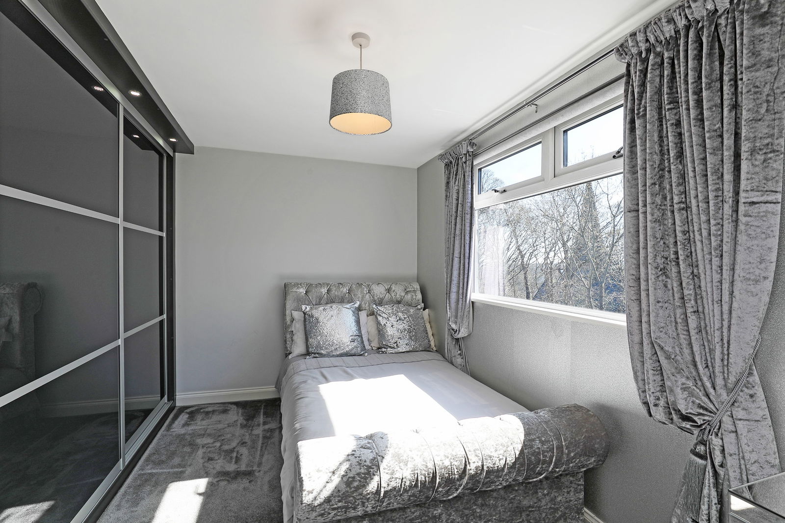A front facing double bedroom has a window and fitted wardrobes to the expanse of one wall.