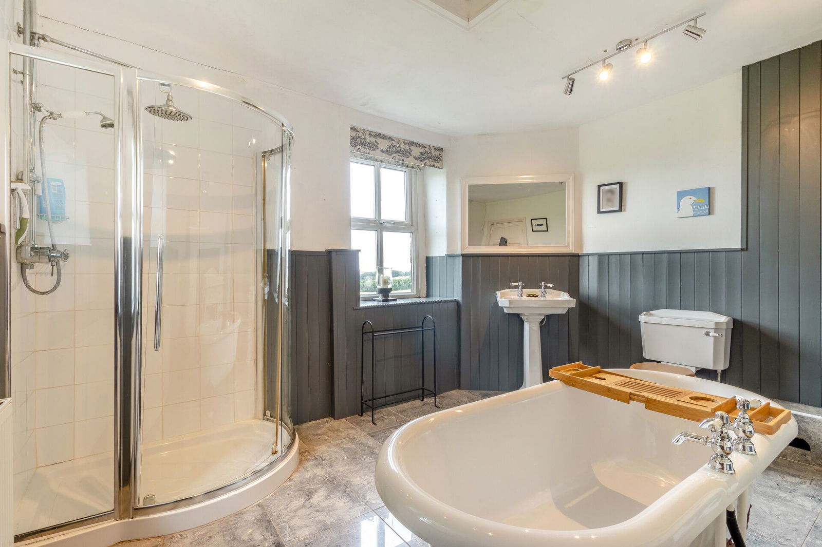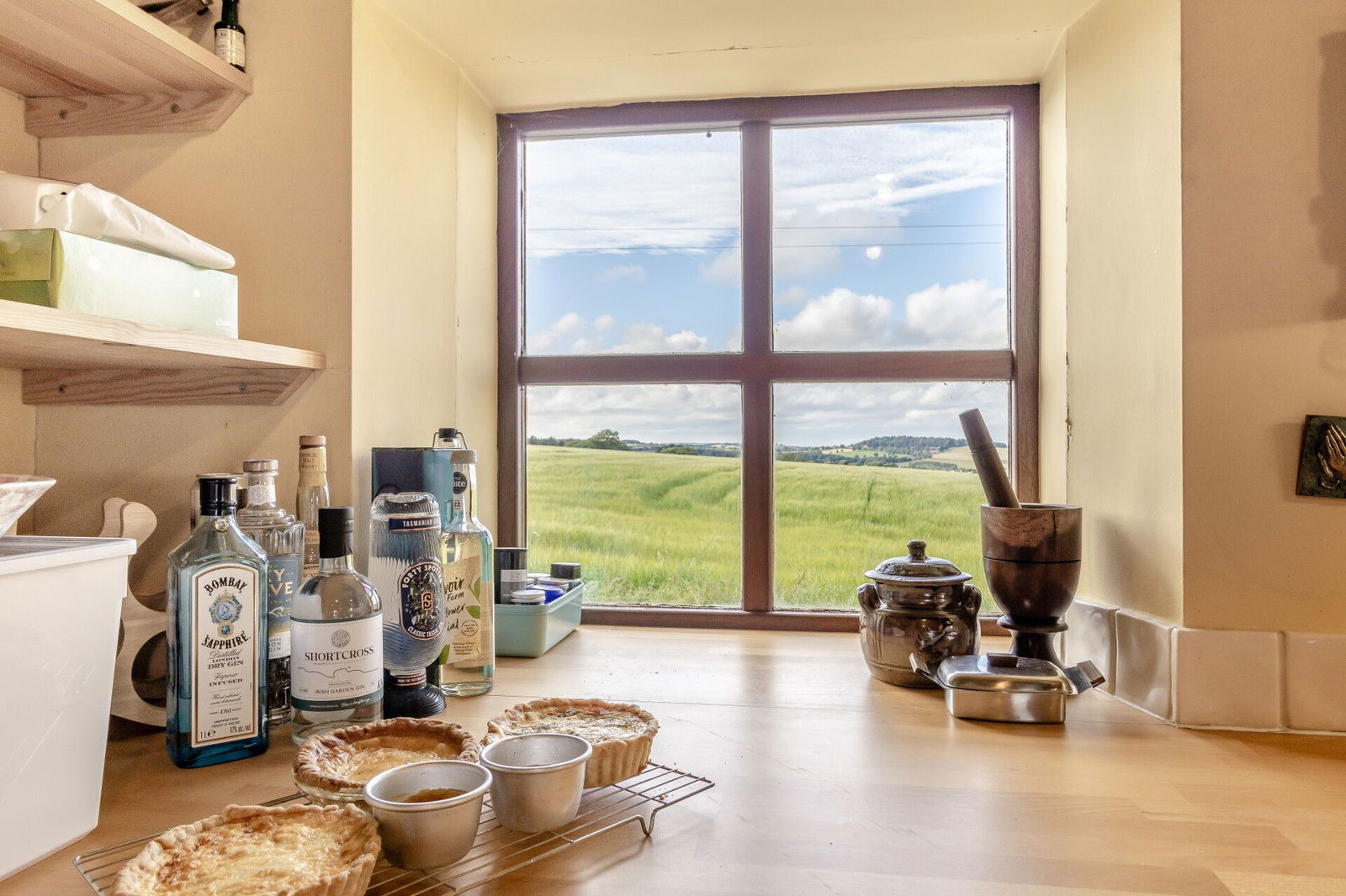 The kitchen retains exposed beams and timbers to the ceiling, has windows to three aspects, all commanding differing views over the glorious surrounding countryside. There are exposed floorboards and a comprehensive range of fitted furniture with work surfaces incorporating an inset Belfast pot sink whilst a complement of appliances includes an electric range oven with ceramic hob, fridge, freezer and dishwasher.