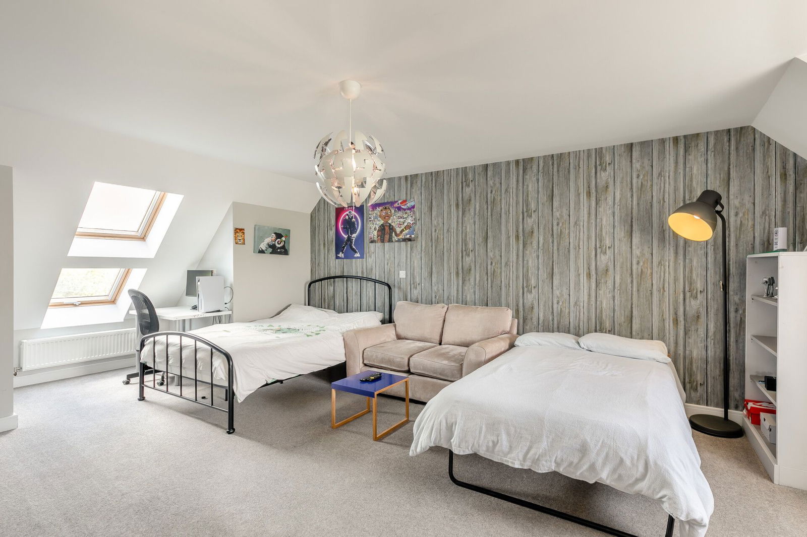 A central landing has of a Velux skylight window, gains access to the loft space and presents two first floor generous double bedrooms each with windows to both front and rear aspects, one of the rooms benefiting from fitted wardrobes.