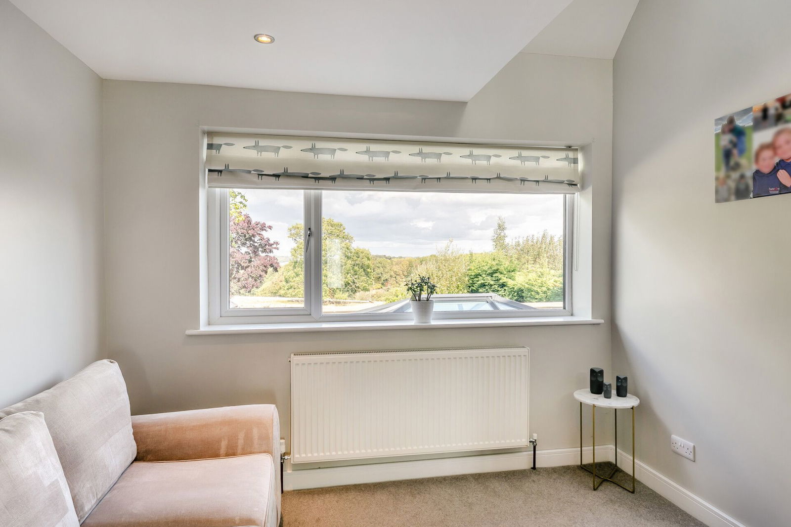 A generous living room has a window to the side aspect, positioned to capture amazing sun sets, whilst full height windows to the rear sit on either side of twin doors opening onto a glass Juliet balcony resulting in stunning views across the valley towards Cawthorne capturing Emley Moore mast beyond. There is a window to the front aspect and an area ideal for a Home Office.