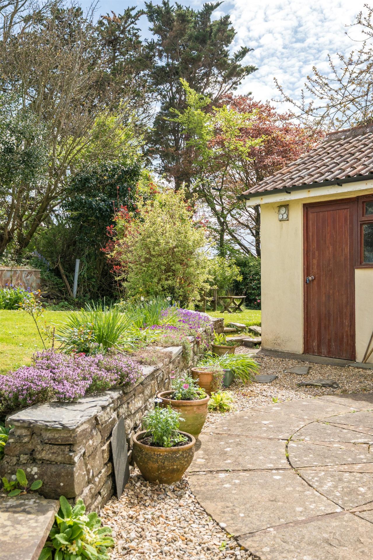 The gardens are a true feature of Higher Ashford Cottage, with manicured lawns, vibrant borders, and various seating areas from which to enjoy the peaceful surroundings and lovely views across Ashford and towards the sea, all of which enjoy a high degree of privacy and also being fully enclosed. A detached garage and workshop adds practicality.