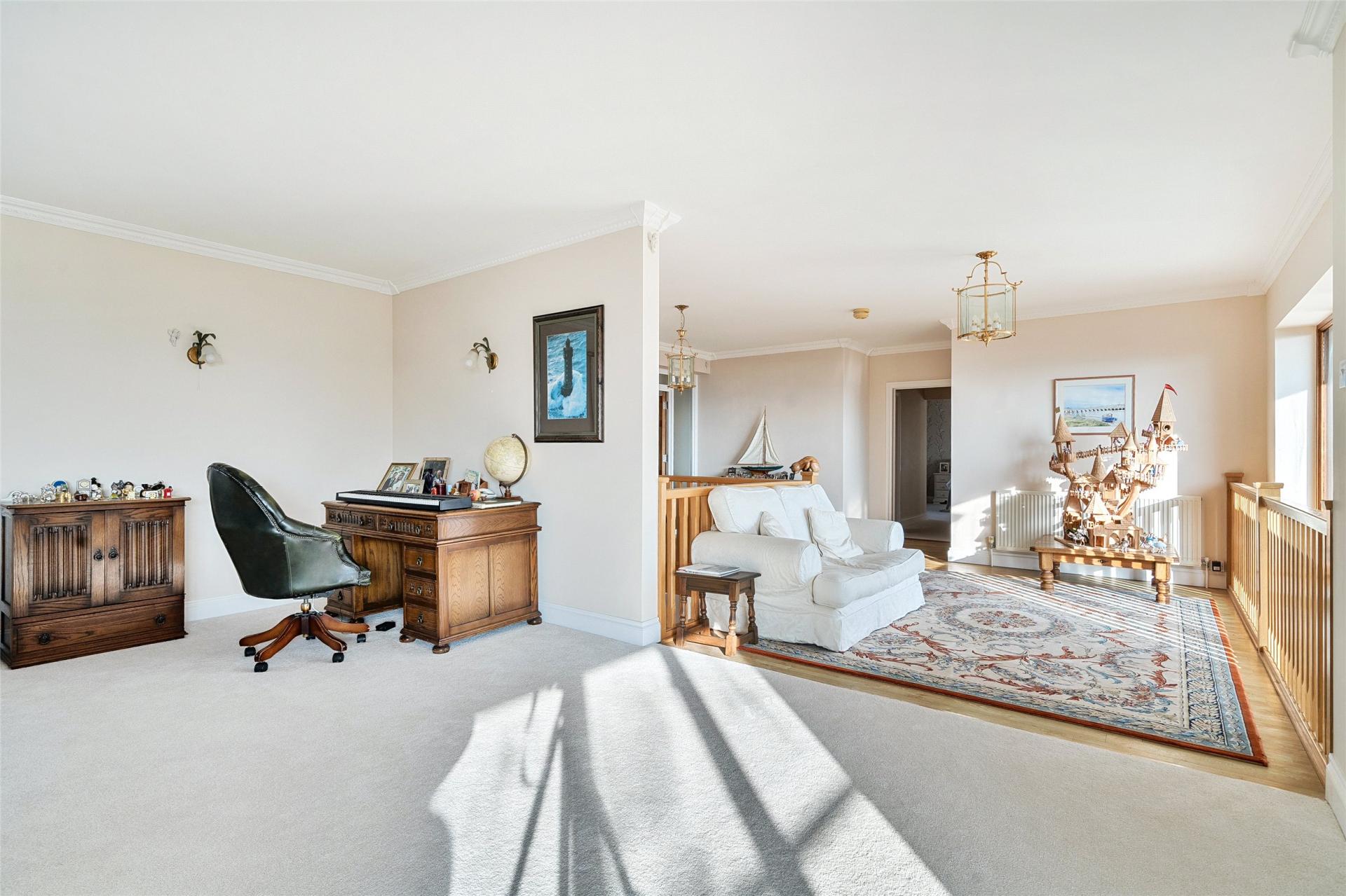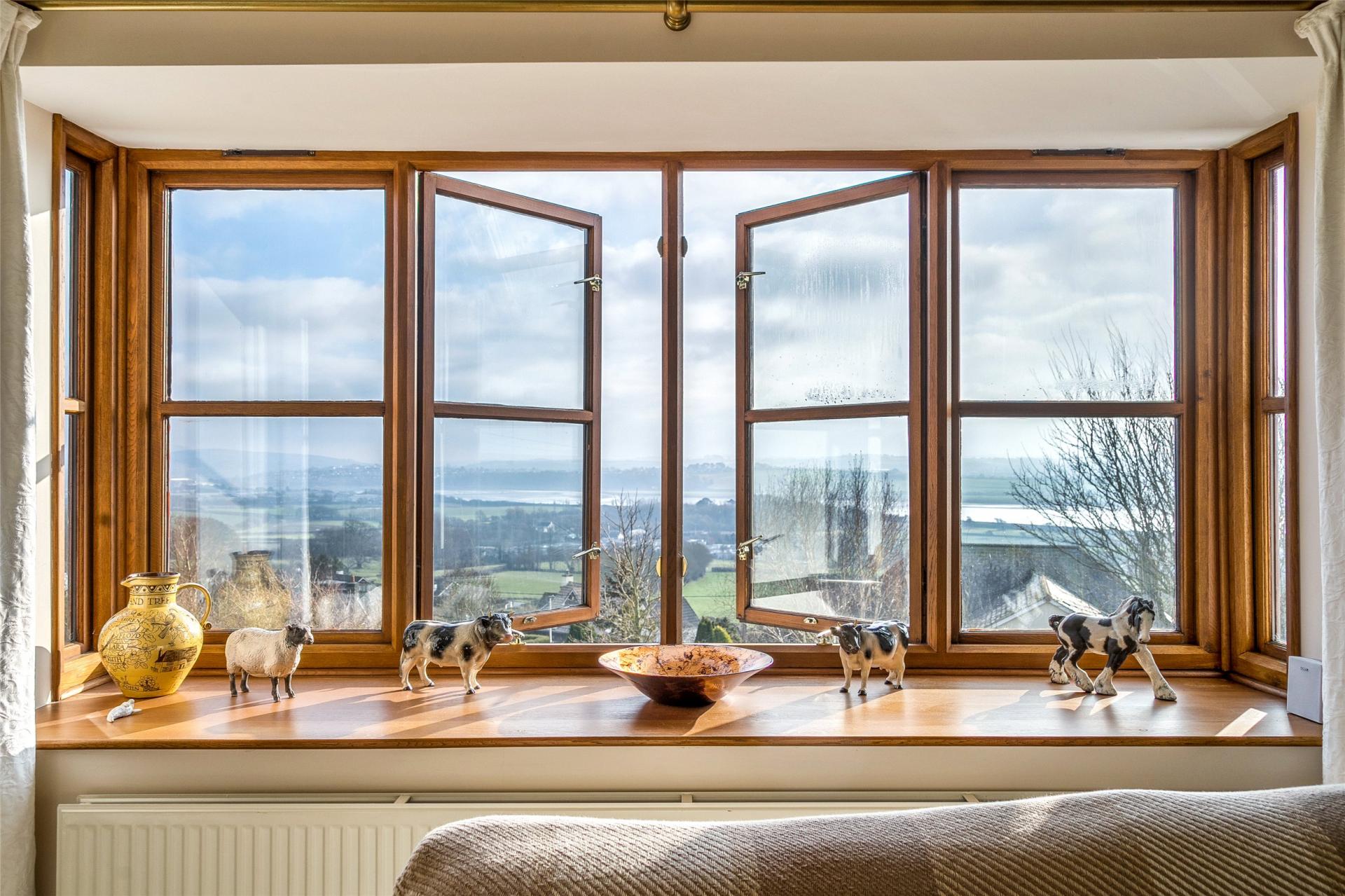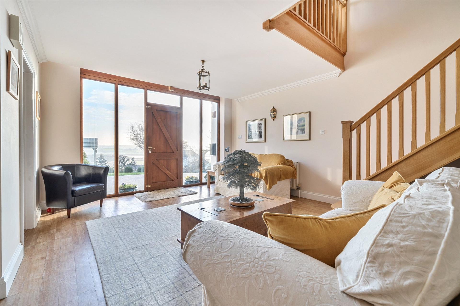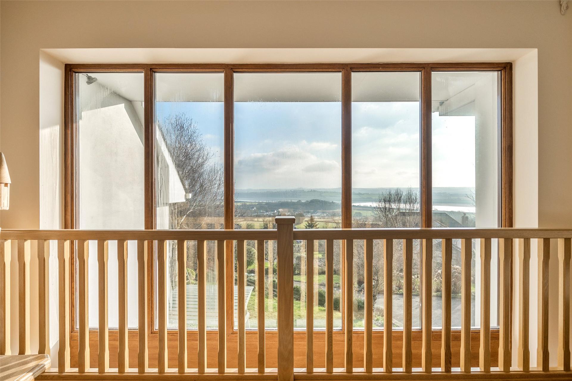 Ascending the staircase, the spacious first-floor landing leads to a beautifully appointed living room, a room that will undoubtedly be a highlight of the property. With large windows, this room provides panoramic views over the estuary and beyond, creating an ever-changing vista that is sure to captivate at any time of day.