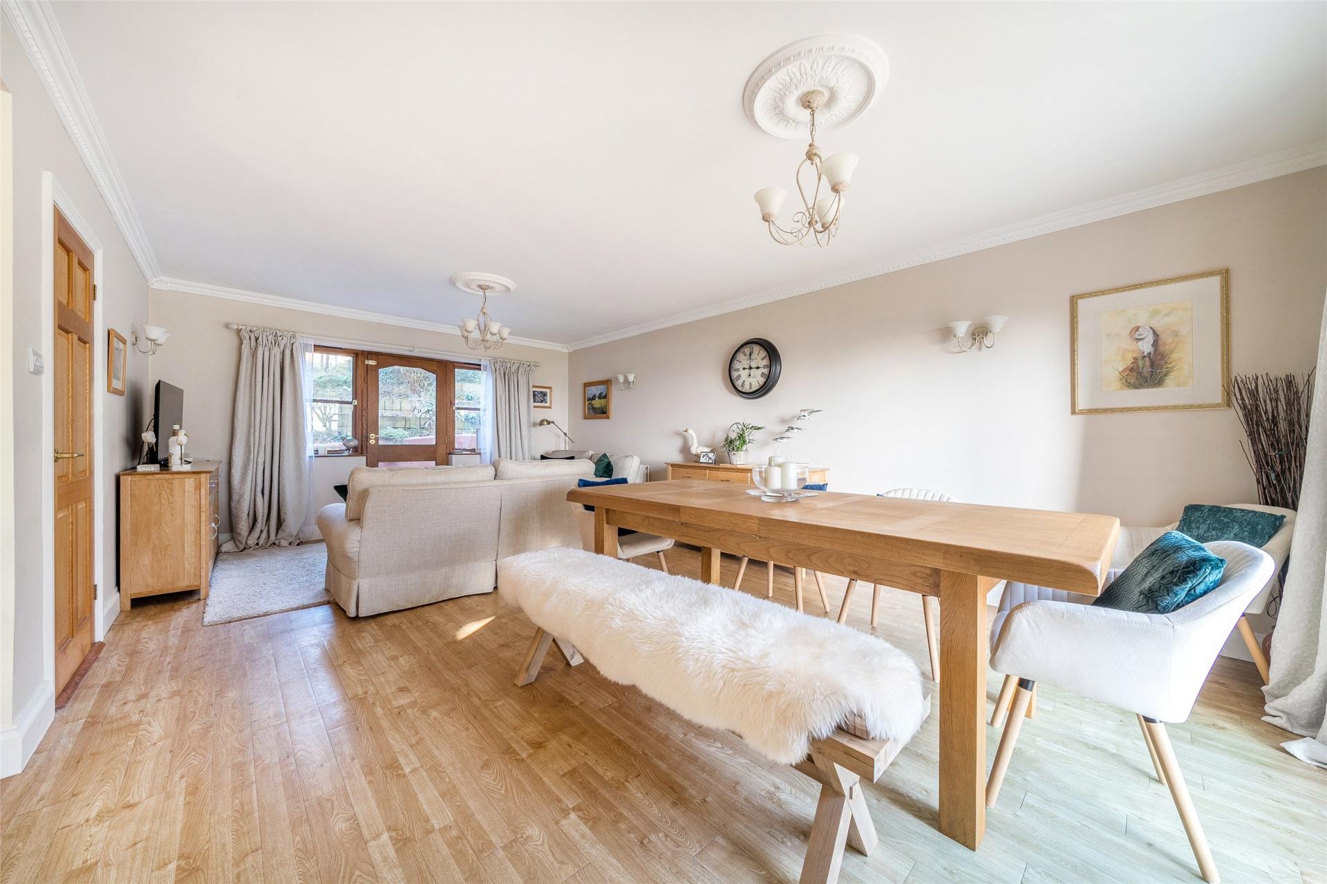 Upon entering, you are welcomed by a grand entrance hall, where the contemporary staircase and large windows creates a striking first impression. To the right, a well-proportioned kitchen awaits, fitted with appliances and offering an ideal space for family cooking and entertaining. The kitchen flows seamlessly into a beautifully sized living room/dining area, which provides an open-plan space for both formal dining and relaxed family living. This elegant space benefits from large windows that bathe the room in natural light from a dual aspect, enhancing the sense of space and providing a glimpse of the stunning estuary views beyond.