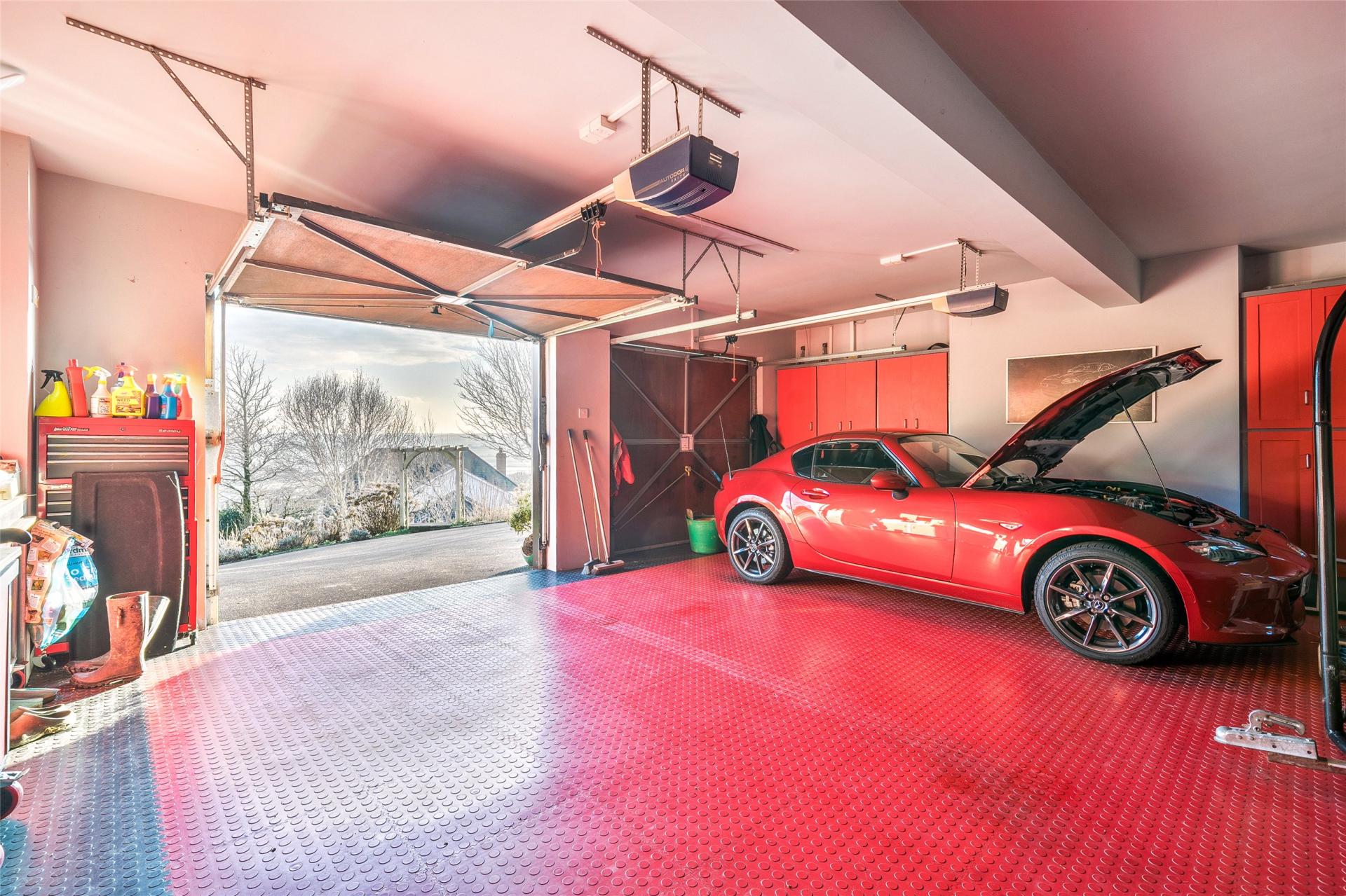 On arrival, the property greets you with a large, paved driveway that offers ample parking for several vehicles, in addition to a beautifully presented front garden with a range of attractive shrubs and flowers. This leads to an impressive double garage, providing excellent storage space or the potential for additional workshop areas.