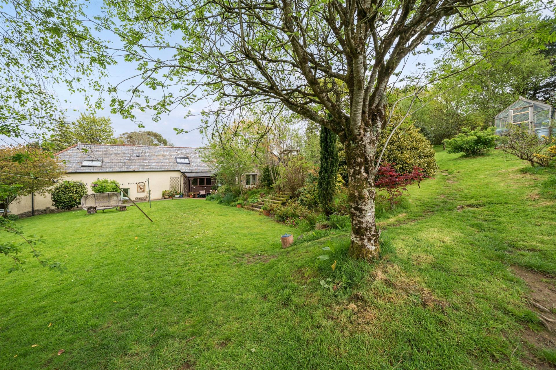 Beyond, a gated paddock connects to the stable yard with three loose boxes, a tack room and store. A productive orchard and kitchen garden features raised beds. There are also privately owned solar panels located on the western side of the garden which help towards generating an additional income and reducing energy bills.