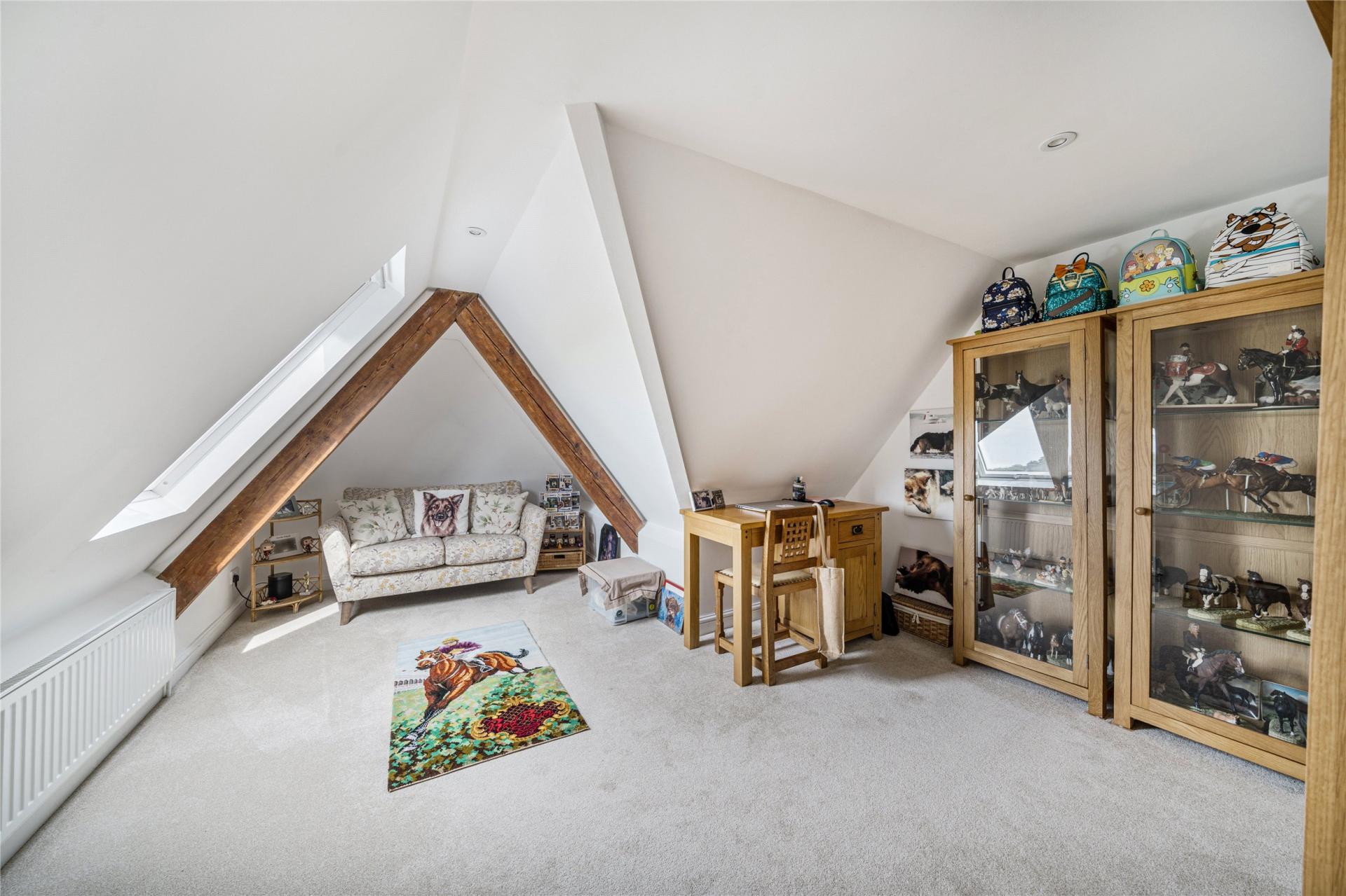 Externally, The Old School continues to impress. A sweeping private driveway provides ample parking and leads to a detached double garage, which is fitted with solar panels generating a healthy income of approximately £1,500 per annum. Above the garage, a large room offers excellent potential for conversion, subject to the necessary planning permissions – ideal for use as a home office, gym, or annexe accommodation.