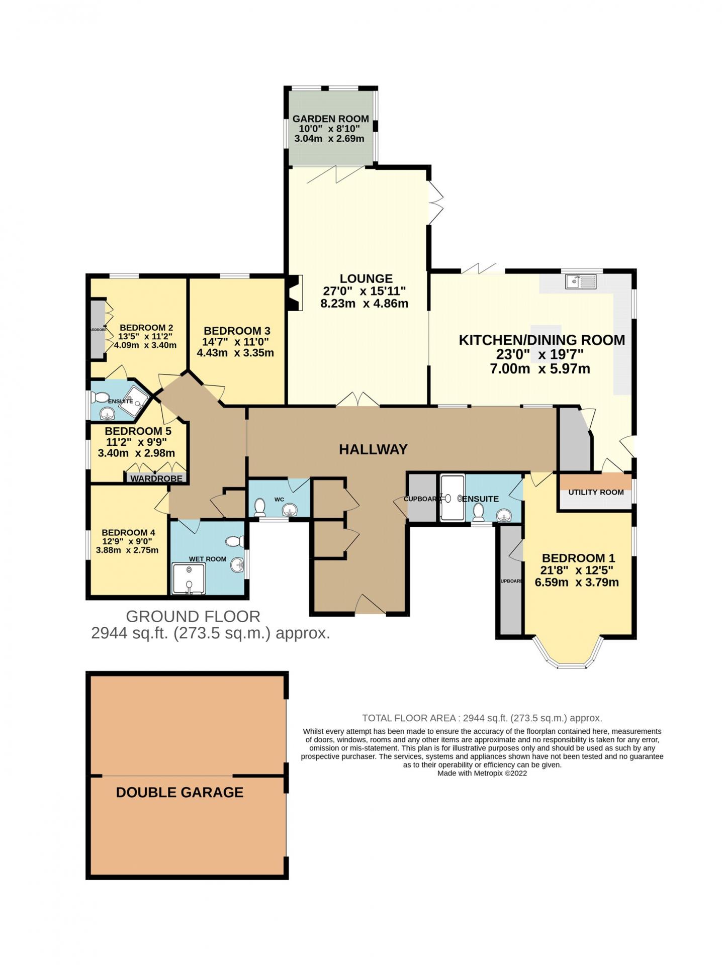 There are 5 bedrooms, all a very good size, in particular the main bedroom with bay window, large walk-in wardrobe and an impressive en-suite. There is also a further en-suite bedroom with fitted wardrobes. To the other end of the property is a large family wet-room which serves the remainder of the bedrooms.