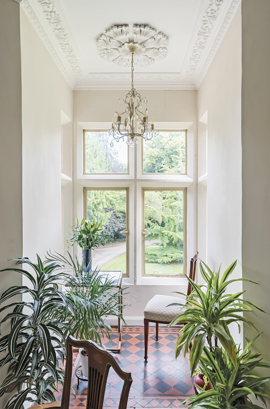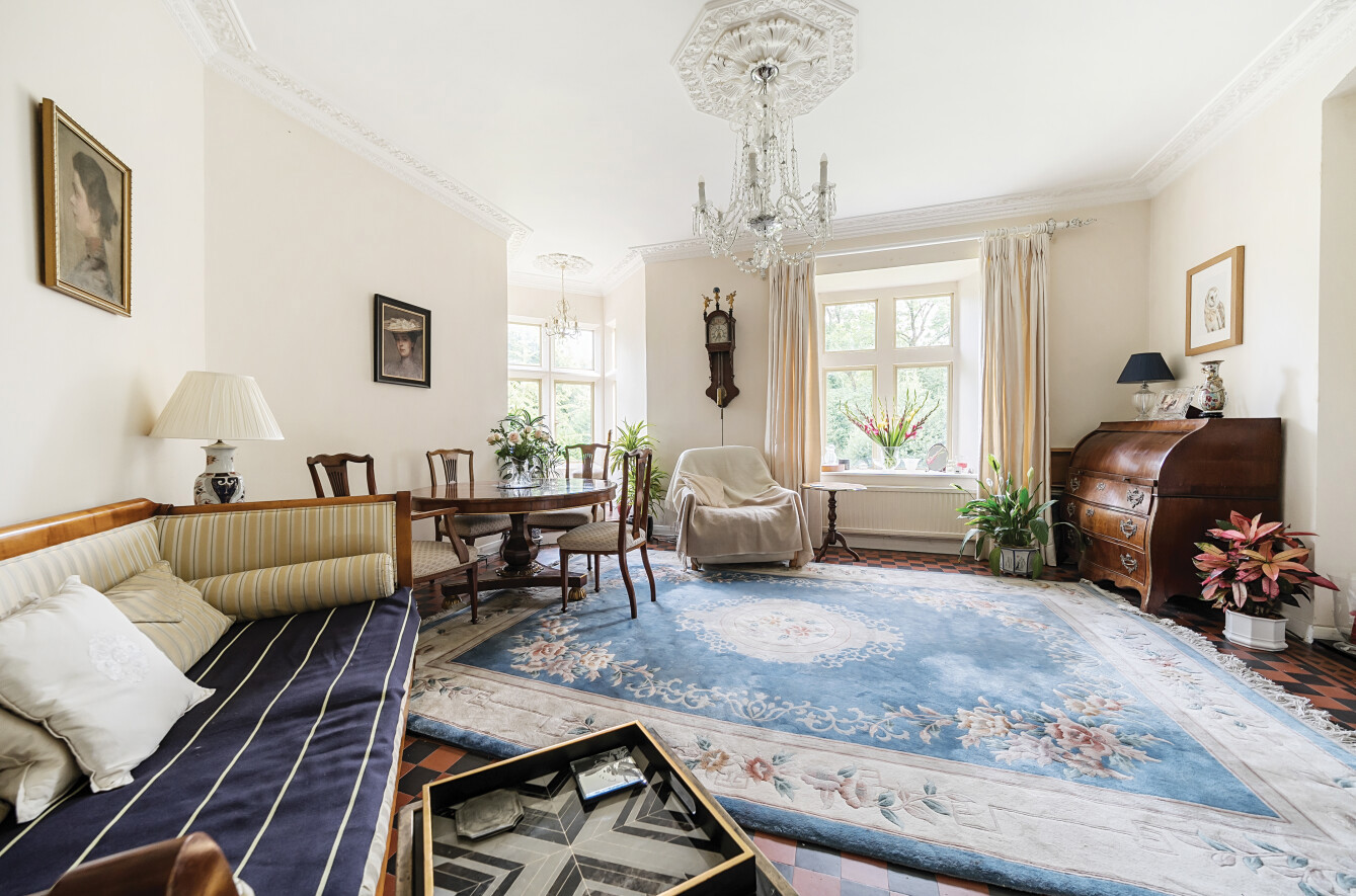 Set on the site of the Battle of Lansdown, just a short distance north of the beautiful Georgian city of Bath, Battlefields House is a stunning example of architect Charles Harcourt Masters work, the man responsible for the nearby Dyrham Park grounds. Built in 1738 on the site of Lilliput Castle, which was designed by John Wood the Elder, this Grade II listed villa and its outbuildings were divided into separate dwellings in the late 1970s. Occupying the first floor, this elegant two-bedroom apartment, one of eight in the main house, boasts wonderful proportions, period features, and views to the east, south, and west. Located in the south Cotswolds and sitting in almost four acres of verdant gardens and woodland with vistas towards the Severn Estuary and the Brecon Beacons, this stunning home also has excellent links to Bristol, the M4 motorway, and train travel to the capital. The current owners have lived here for twelve years and say, we will miss everything about living here from the history, impressive building, and glorious grounds to the large windows that let in so much light and the fantastic sunsets. They add, sitting out on the lawn with friends and neighbours on a balmy evening, watching the sun go down, drinking wine, and chatting makes for a very happy and tranquil scene. Extensive lawns of almost an acre make up just part of the well-maintained communal grounds, while notable trees giant sequoia, copper beech, lime, sycamore, and oak create a small arboretum. The grounds are impressive and host a range of wildlife, including jays, woodpeckers, pheasants, and tawny owls. We also see the occasional roe deer.
