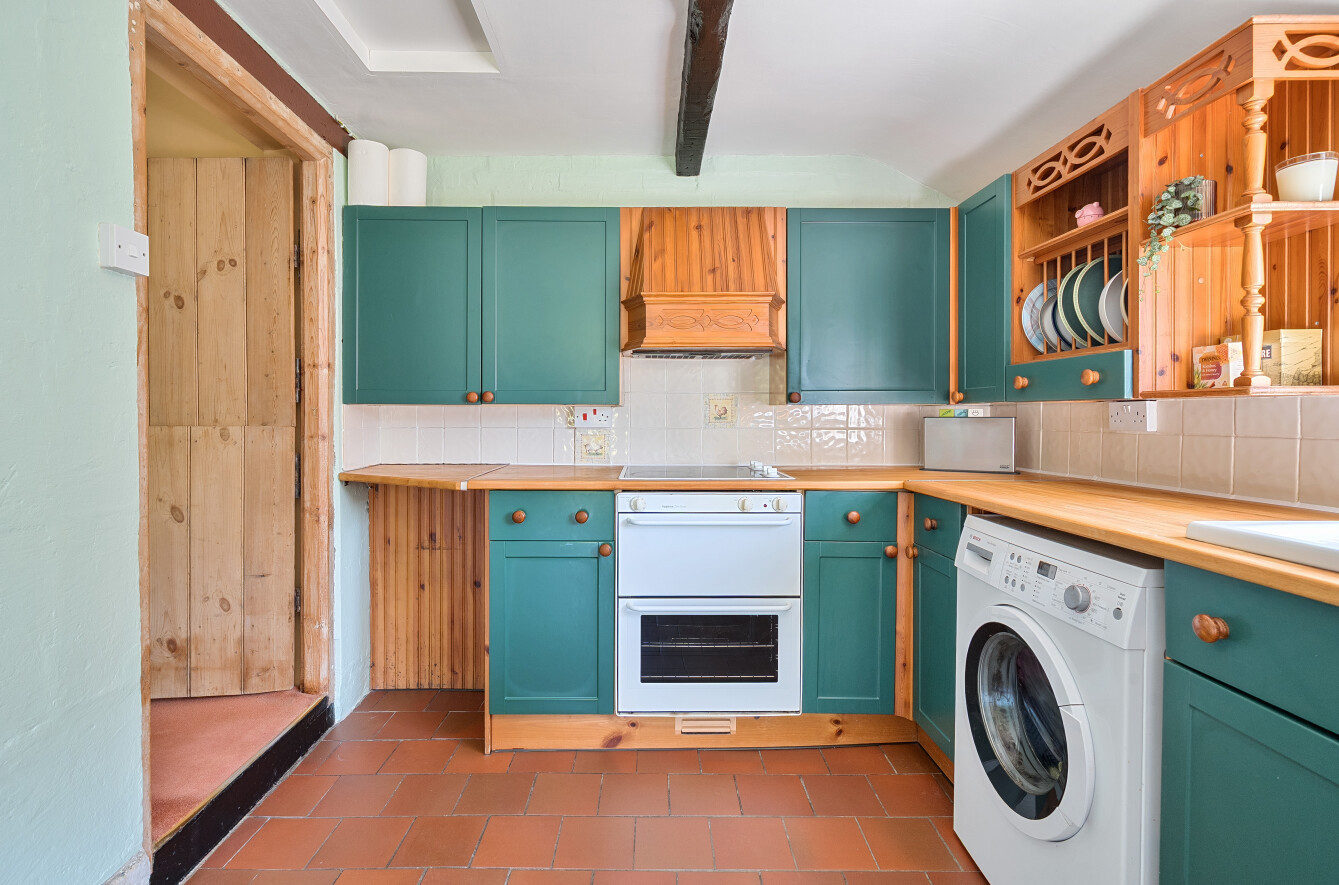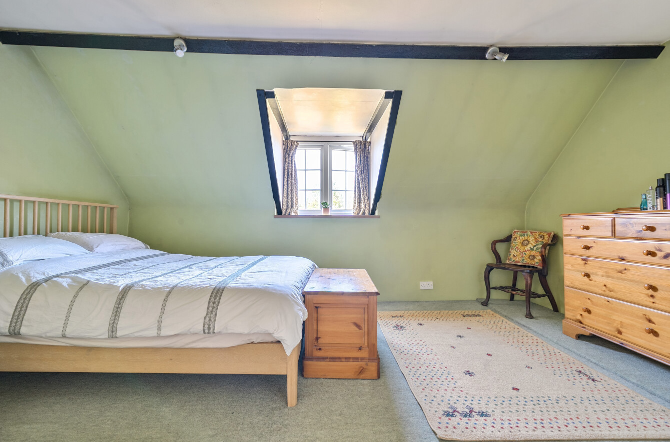 Inside, the cottage is arranged over two floors. On the ground floor, the sitting room a favourite space sits alongside the kitchen/diner, which leads through to a shower room. Its cosy in winter with its log burner and oak beams, and wonderfully light in summer thanks to its sunny aspect. The thick walls keep it cool even on the hottest days. Upstairs, two bedrooms enjoy lovely views across the surrounding countryside.