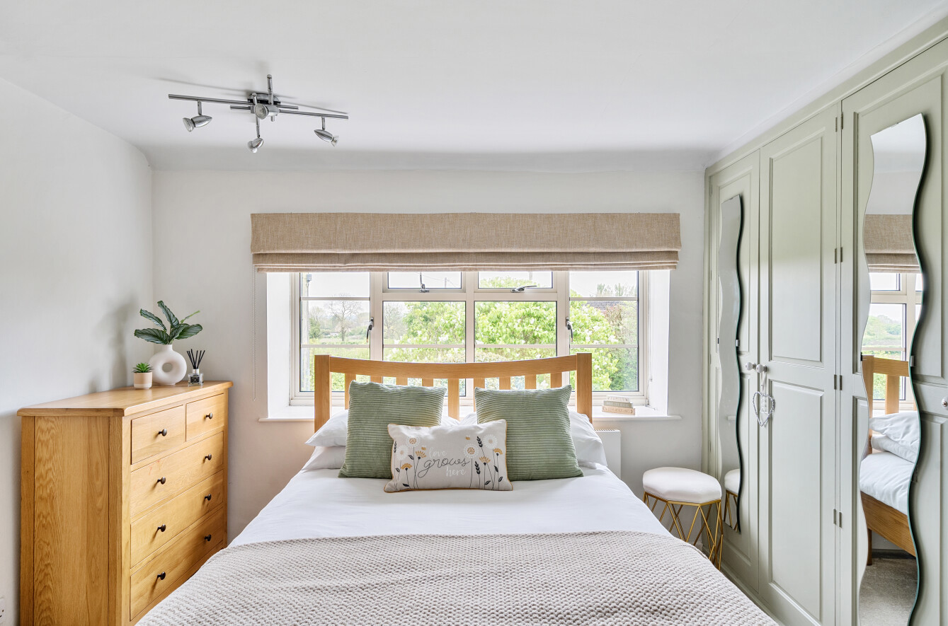 We have completely refurbished the second bathroom, fitted new wardrobes in keeping with the house, laid herringbone flooring, modernised the kitchen, opened up the garden for panoramic views, and built a garden lodge with bar, seating, and decking.