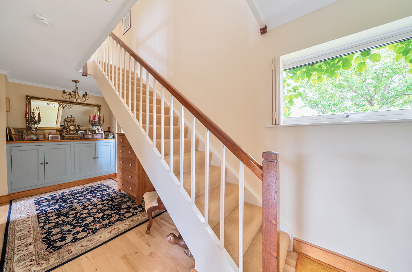 The grounds are exceptional, south-facing and full of character. A potting shed with stained-glass windows and chandeliers is a favourite spot for coffee, while a summerhouse affectionately known as the hovel provides another place to escape. 'The garden has given us enormous privacy and countless happy memories.'