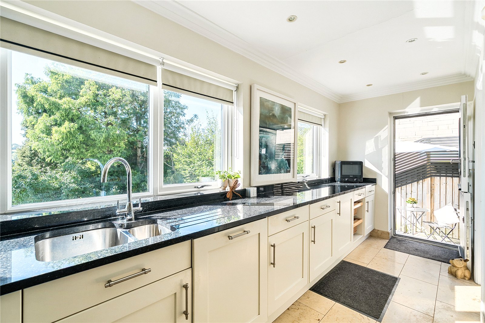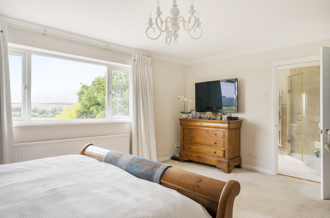 The property boasts generous proportions and has had thoughtful improvements over the years. It has four spacious double bedrooms, all with built-in wardrobes, and the principal bedroom benefits from an ensuite. Downstairs, the kitchen is both practical and inspiring, with NEFF appliances, ample storage, granite worksurfaces and a picture window looking onto nature. Cooking here has always felt like a joy rather than a chore. The large living room and kitchen both enjoy far-reaching views across the garden and surrounding hills. No matter the time of day or season, the view always gives us pause its never the same twice.