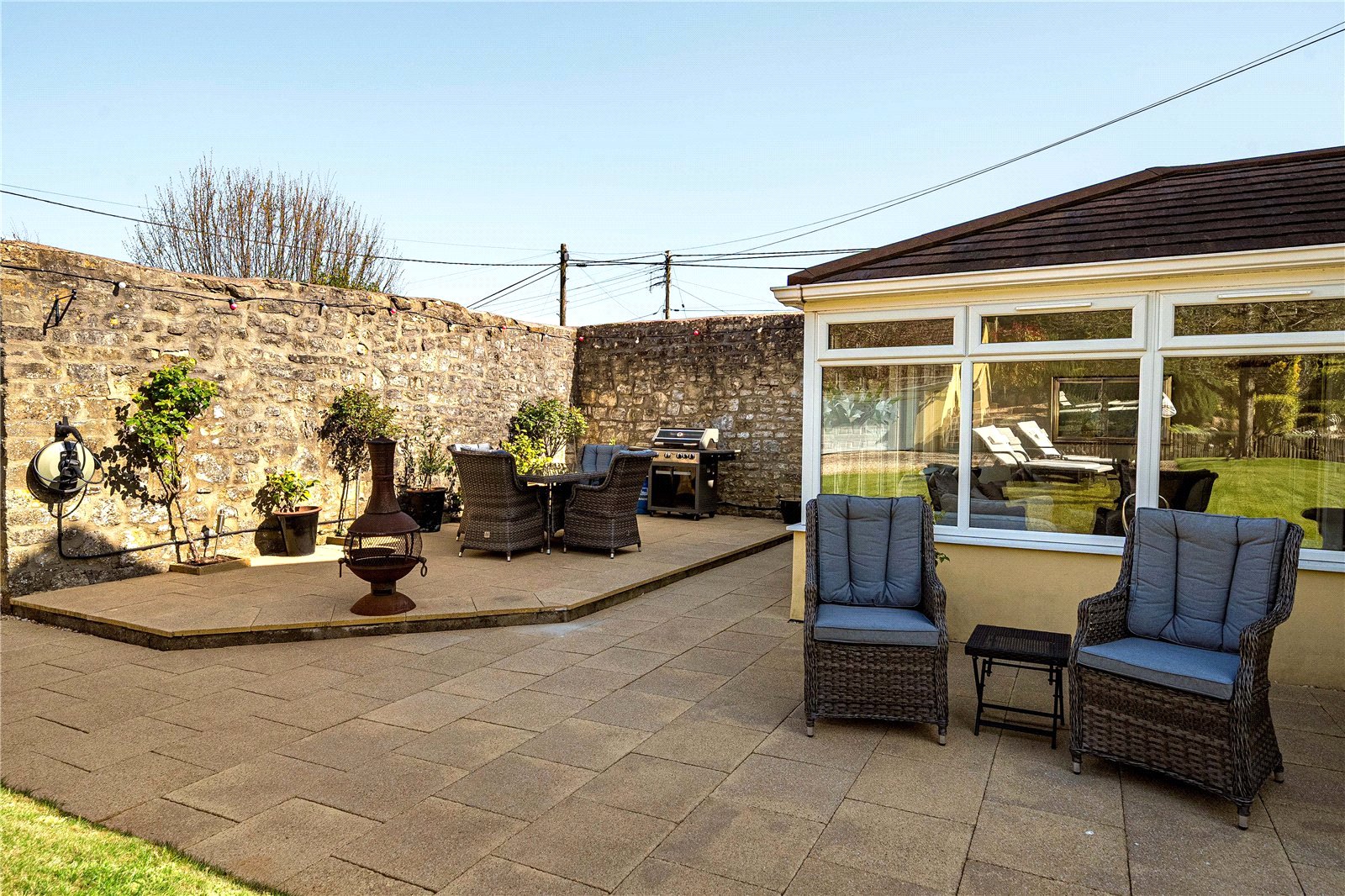 The outdoor space is beautiful and features a good-size lawn area with step access to a large well-planted rockery fitted with lighting. There is also a sun trap raised patio and barbecue area, the perfect space to entertain family and friends in the summer.