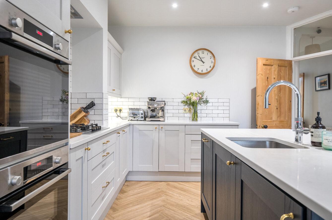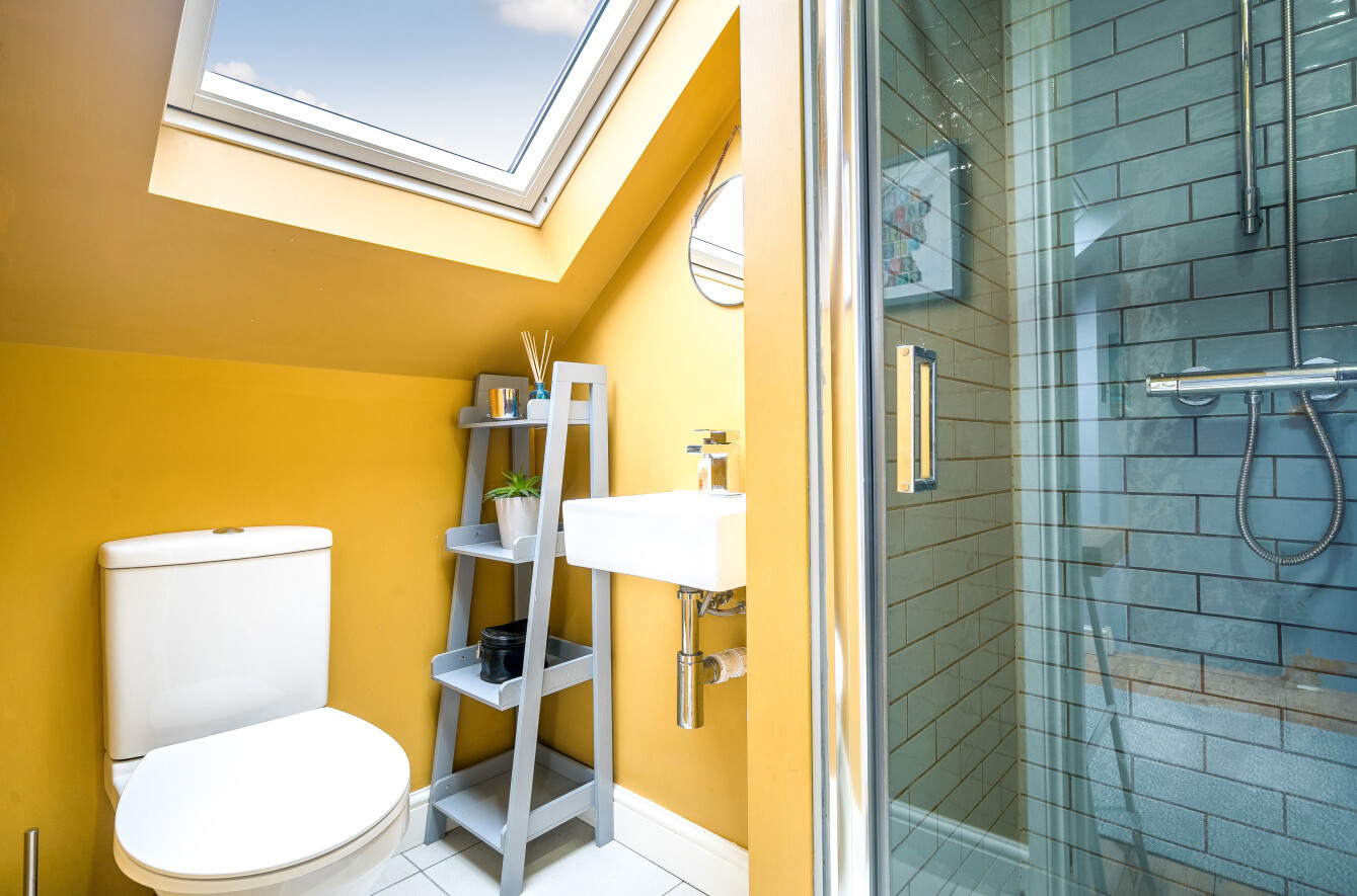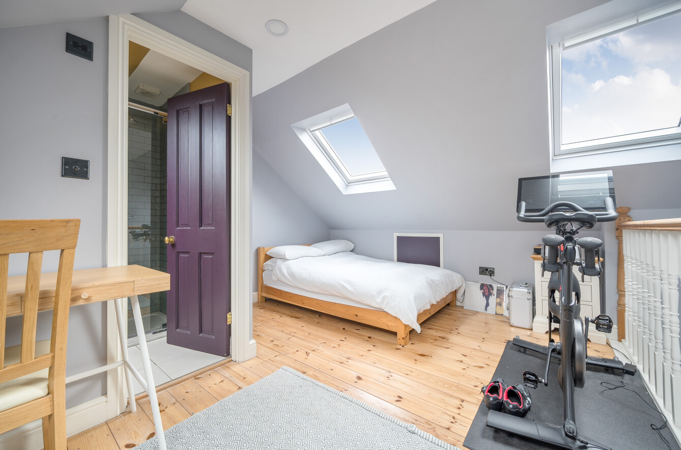 The kitchen/diner area has been perfect for hosting guests and for raising small children. The space is so light and airy, and its where we spend most of our time. The sitting room is another of our favourite spaces as its perfect for cosy winter evenings with the wood-burning stove on. The top room offers lovely views out to Round Hill.