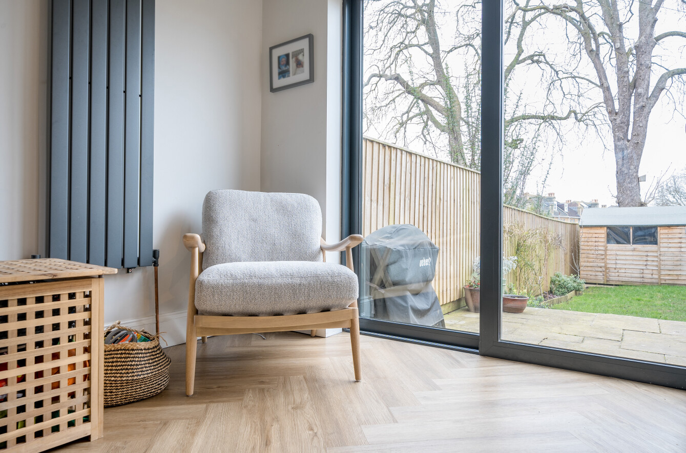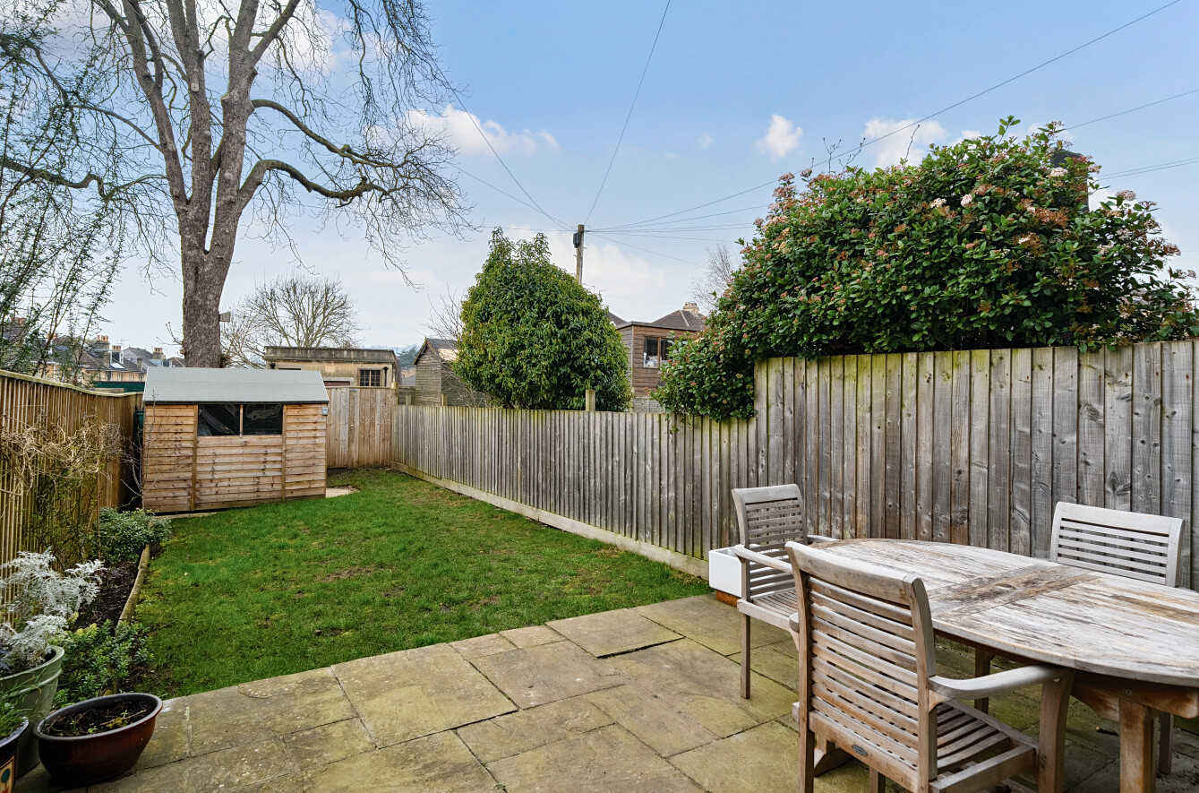 The garden is a fantastic extension of the house, offering plenty of room for outdoor play and summer barbecues, while also being easy to maintain. Its the perfect spot for summer afternoons and evenings, shaded by two beautiful horse chestnut trees until later in the day.