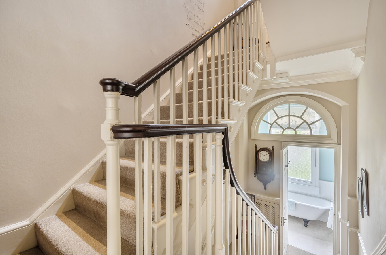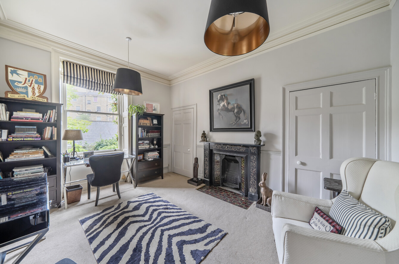 On the ground floor, two versatile reception rooms offer flexibility one currently used as a bedroom, the other a study overlooking the garden. The first floor is home to the grand drawing room, filled with natural light from three tall sash windows, with original marble fireplace and tiered cornicing. 'Bi-fold panelled doors lead into the withdrawing room behind, perfect as a family snug' The upper floors provide five bedrooms and three bathrooms, including a refurbished top-floor shower room and a principal suite with adjoining dressing room.