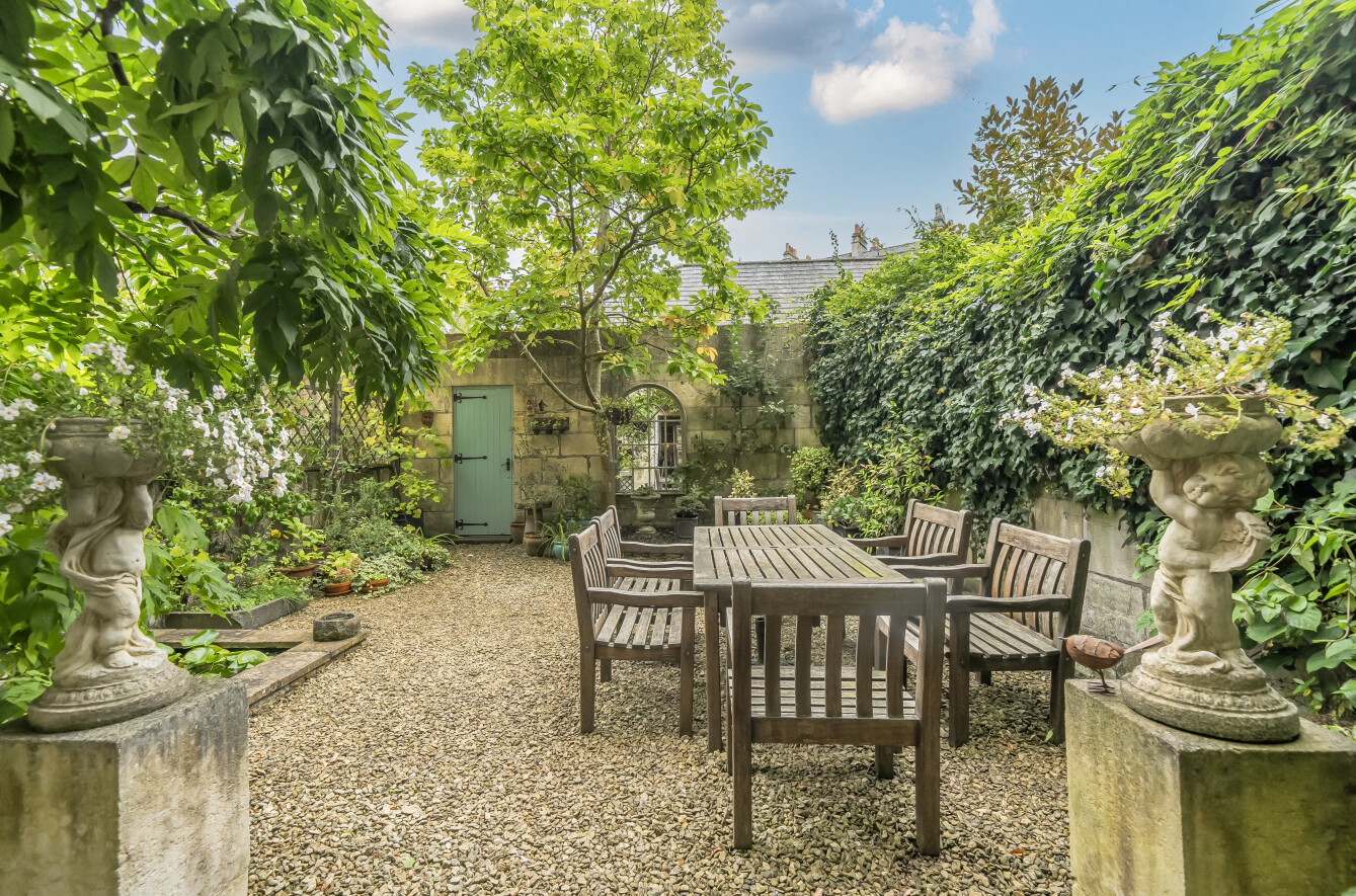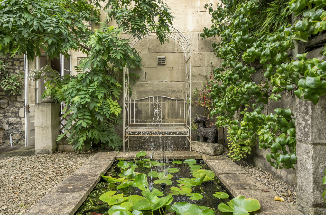 The garden is a delight: a peaceful oasis with pond, fountain, espaliered pear trees and established magnolia, framed by ivy-clad walls for privacy. 'From here, a door takes you out to a spacious private garage, available to rent by separate negotiation.'