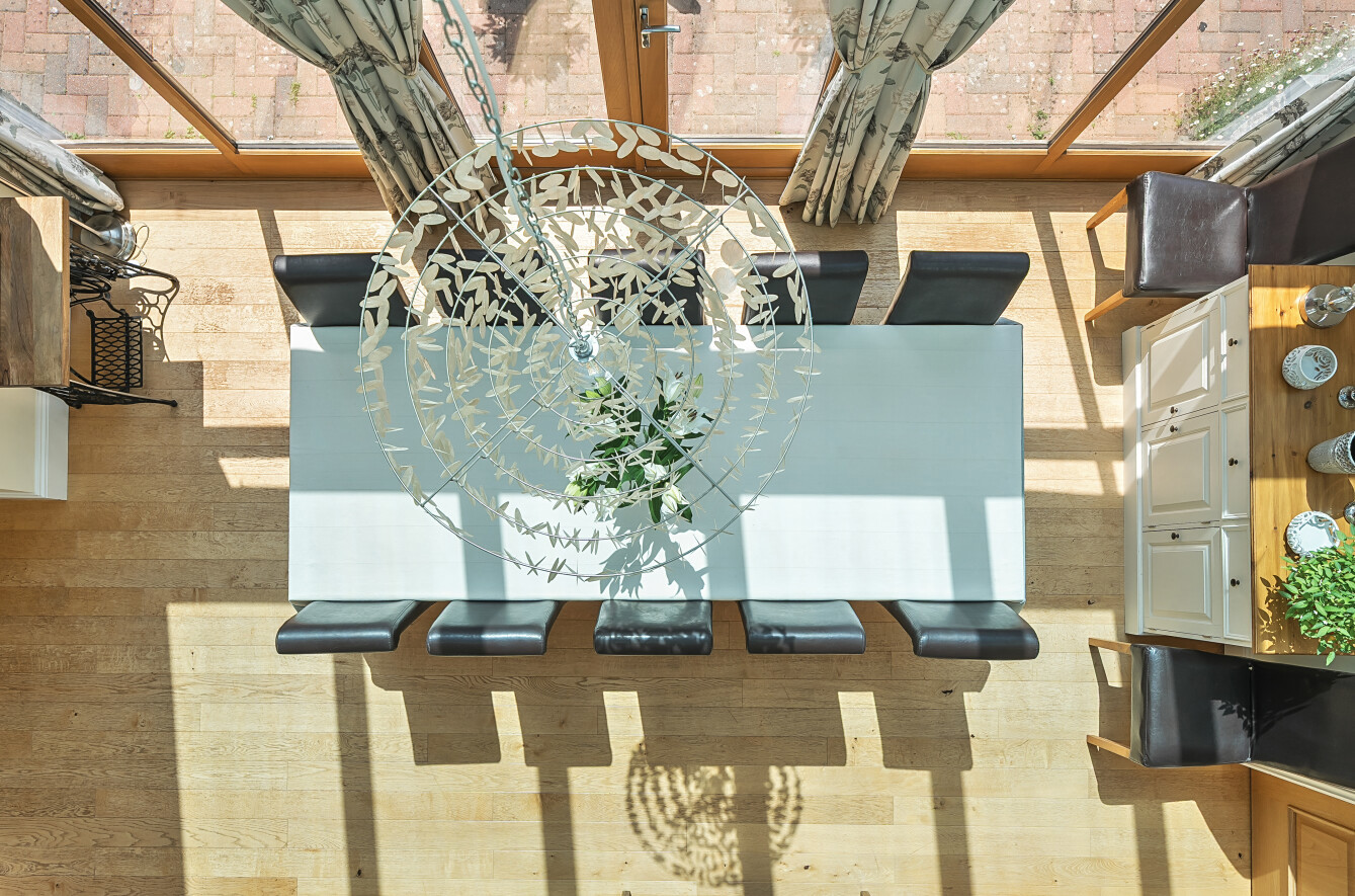 Built on the site of a former bungalow, the owners worked closely with a timber-frame company and local craftsmen to bring their vision to life creating a unique home thats both spacious and filled with light. 'We wanted a spacious home with plenty of natural light, but also one that felt cosy and welcoming. The result is Peartree House, a beautifully executed, contemporary house with over 40 windows. Arranged across two well-planned floors, the house features generous reception rooms, a large open-plan kitchen the heart of the home and garden room, a double-height central dining hall with a galleried landing and six large glass roof-lights perfectly placed for stargazing. The six bedrooms include a peaceful principal suite complete with vaulted ceiling and dressing area. Even with six bedrooms, it never feels too big its still a very warm and intimate family home, the owners reflect. Clever lighting, including soft LED strips on the stairs and landing, adds atmosphere and practicality.
