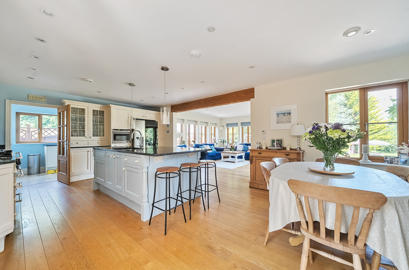 Set within a wonderfully private garden of just under half an acre, this delightful home occupies an excellent position and serves as a haven for both children and adults, bordered by open fields and offering complete privacy. We loved the east-facing garden from the moment we saw it. It felt like the perfect place to raise a family, they say.